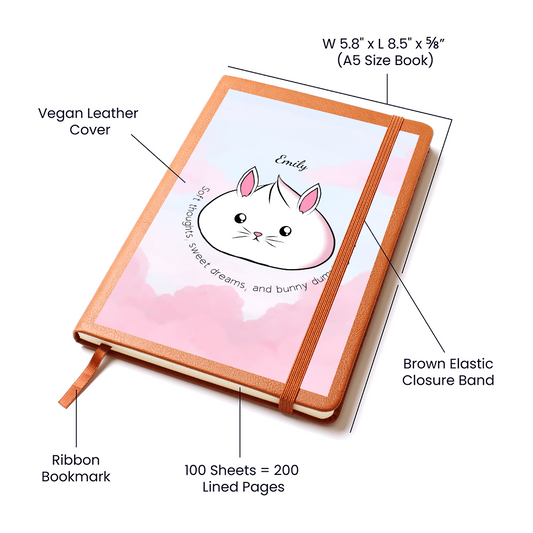 Personalized Cute Bunny Dumpling Journal, Kawaii Self Care Notebook, Soft Aesthetic Diary, Cute Writing Journal, Cozy Gift Idea