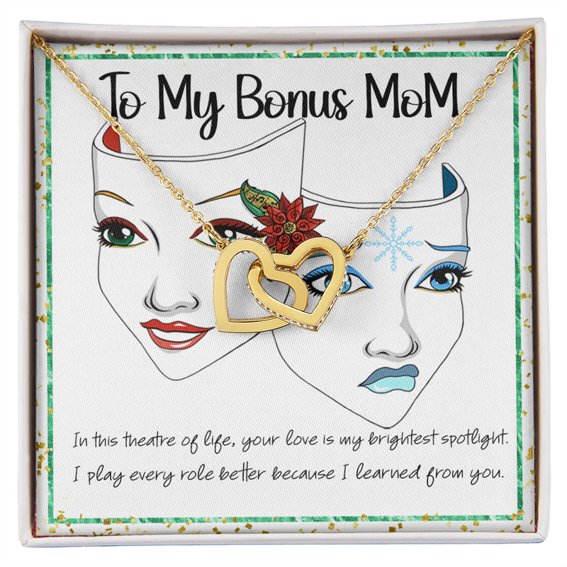 Bonus Mom Interlocking Hearts Necklace with Holiday Drama Mask Card