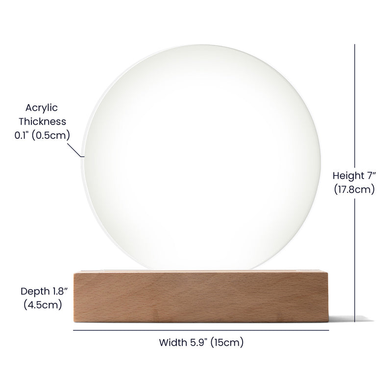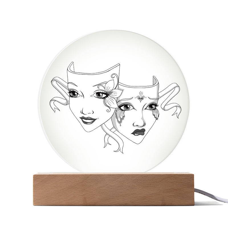 Printed Circle Acrylic Plaque – Drama Mask Design – LED Light Base