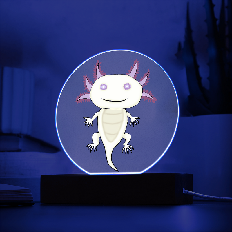 Albino Axolotl Night Light – Cute Kawaii LED Acrylic Plaque with Color-Changing Base