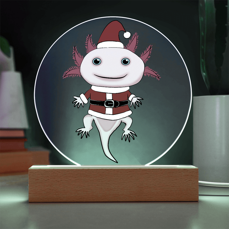 Santa Axolotl LED Acrylic Plaque – Cute Kawaii Holiday Light-Up Sign