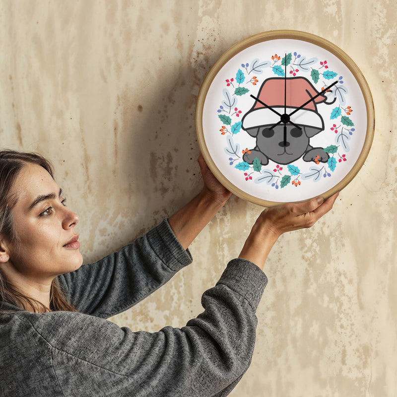 Chiweenie Christmas Wall Clock – Santa Hat Dog Holiday Clock