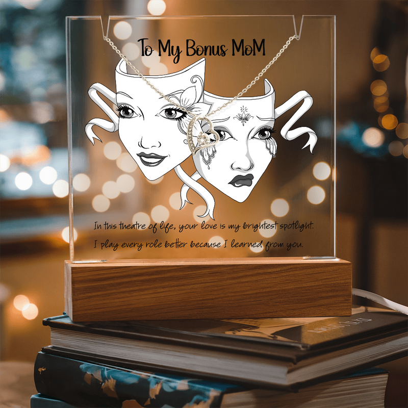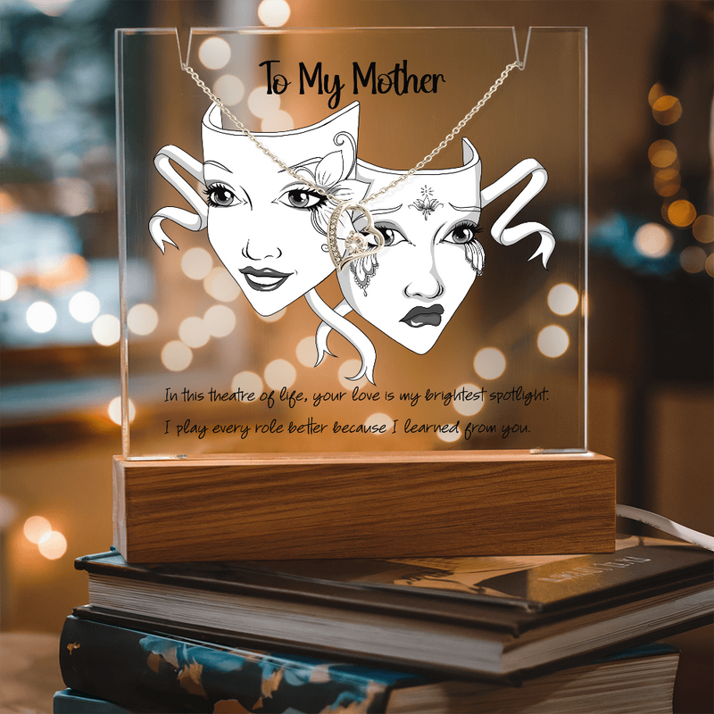 To My Mother Drama Mask Keepsake – Gothic LED Acrylic + Forever Love Necklace