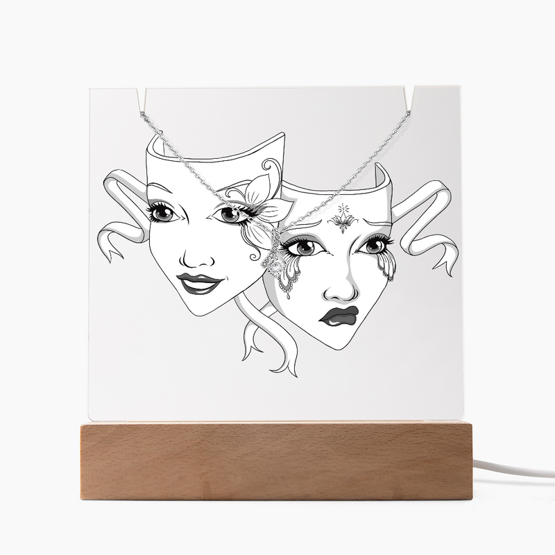 Drama Mask Acrylic Keepsake Gift with Forever Love Necklace – LED Base