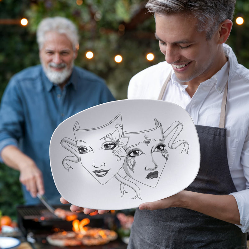 Drama Mask Platter – 10x14” Gothic Theatre Comedy & Tragedy Oval Serving Tray
