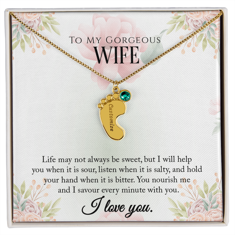 Engraved Baby Feet Necklace "To My Gorgeous Wife"