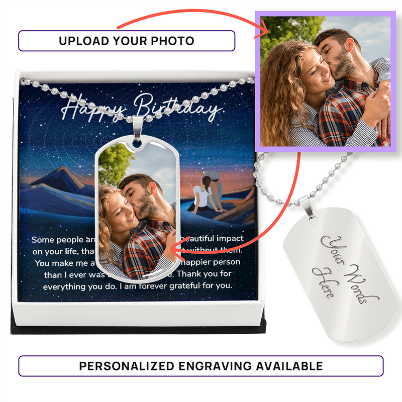 Photo Dog Tag Necklace "Happy Birthday"