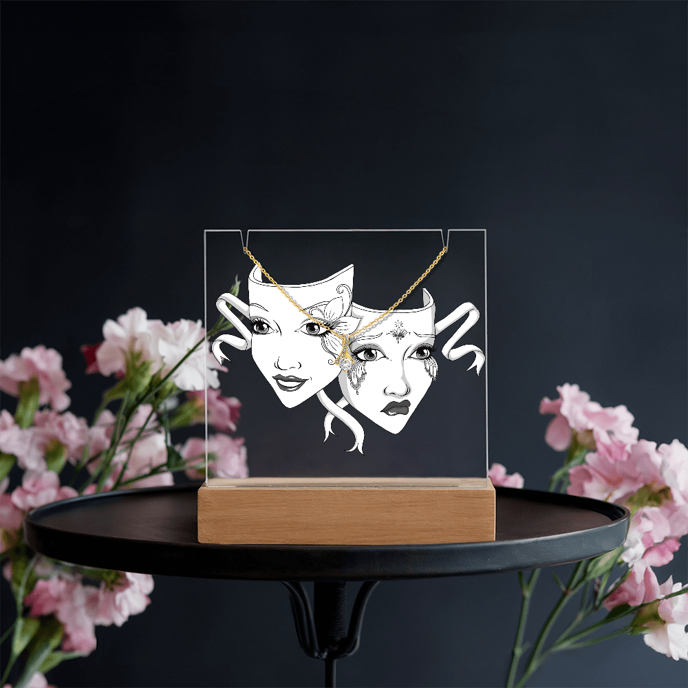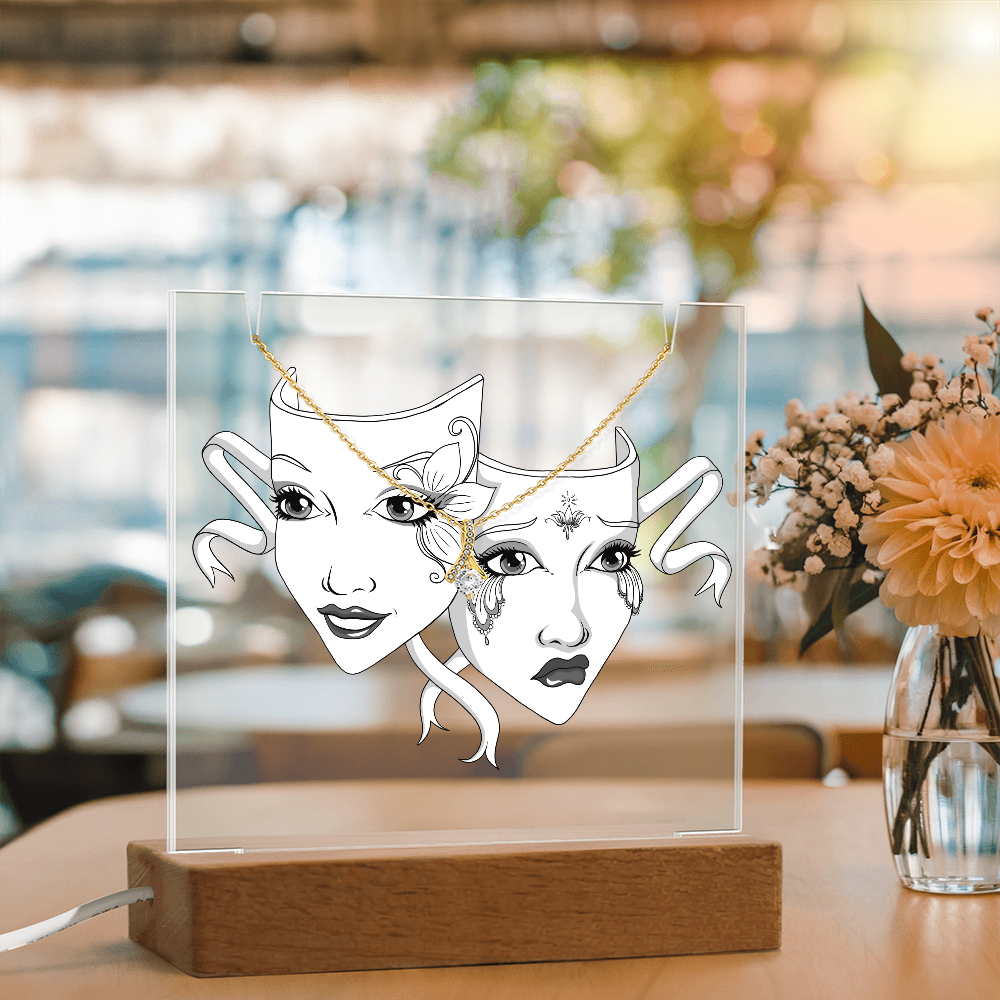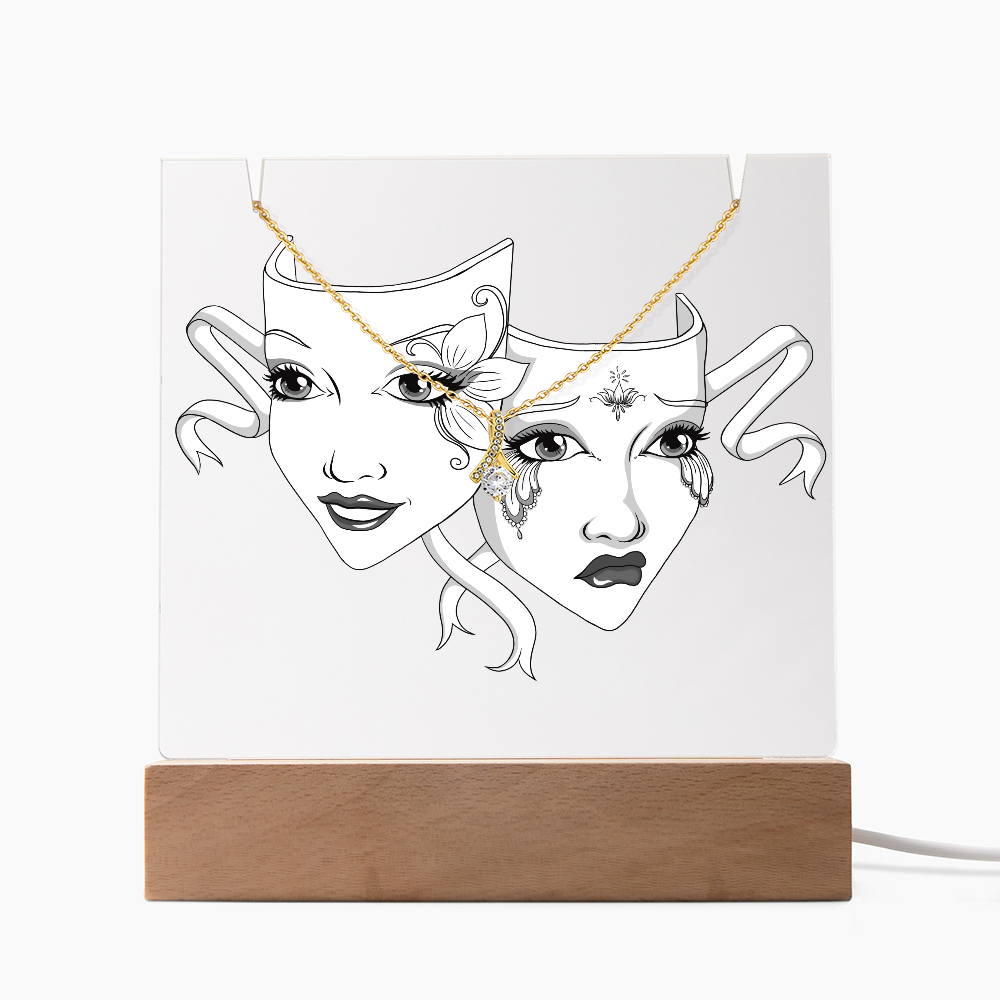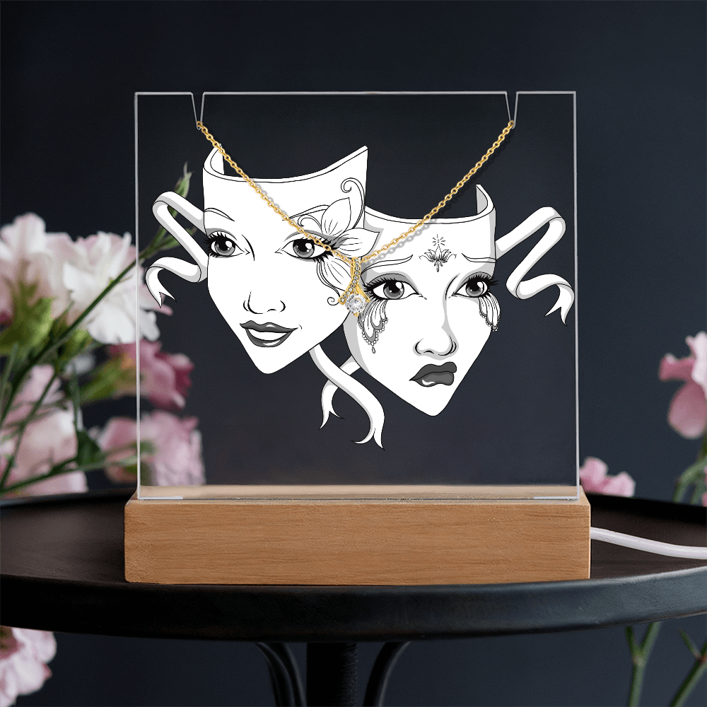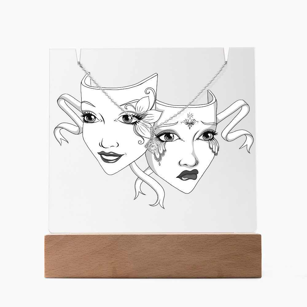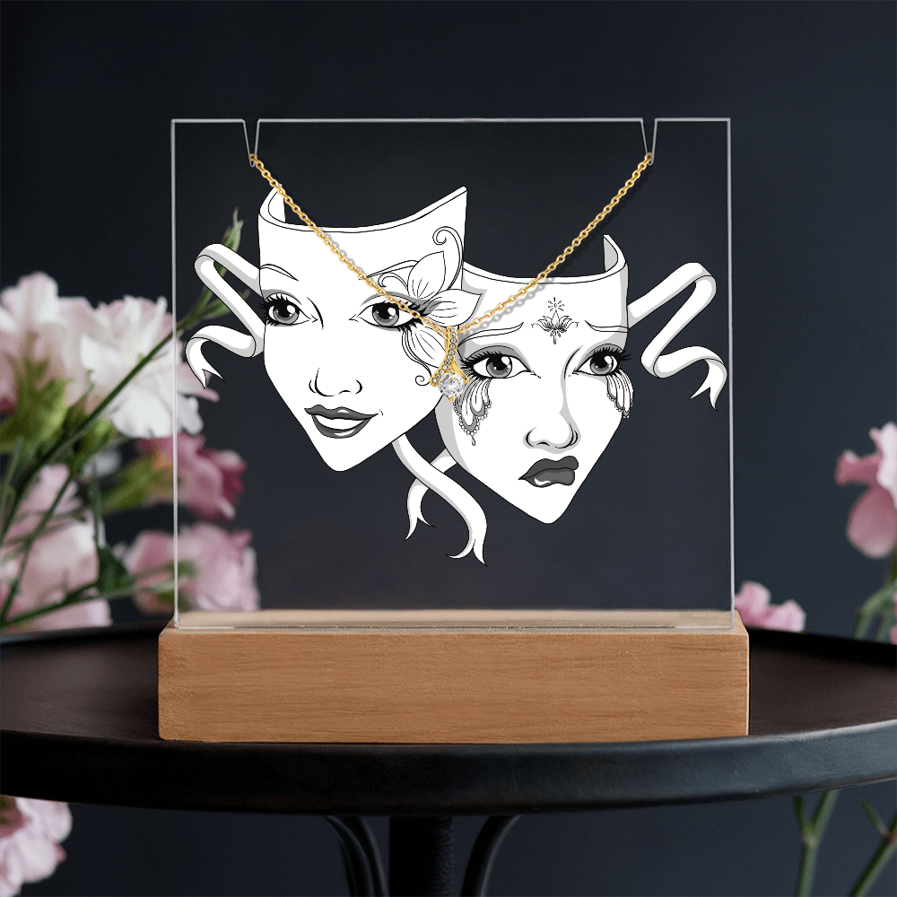 Celebrate the artistry of emotion with our Keepsake Acrylic Bundle, where expressive drama masks meet timeless elegance. Featuring your custom design printed in sharp detail on premium square acrylic, this radiant keepsake becomes even more unforgettable when paired with the Alluring Beauty Necklace β a symbol of love, strength, and graceful performance.