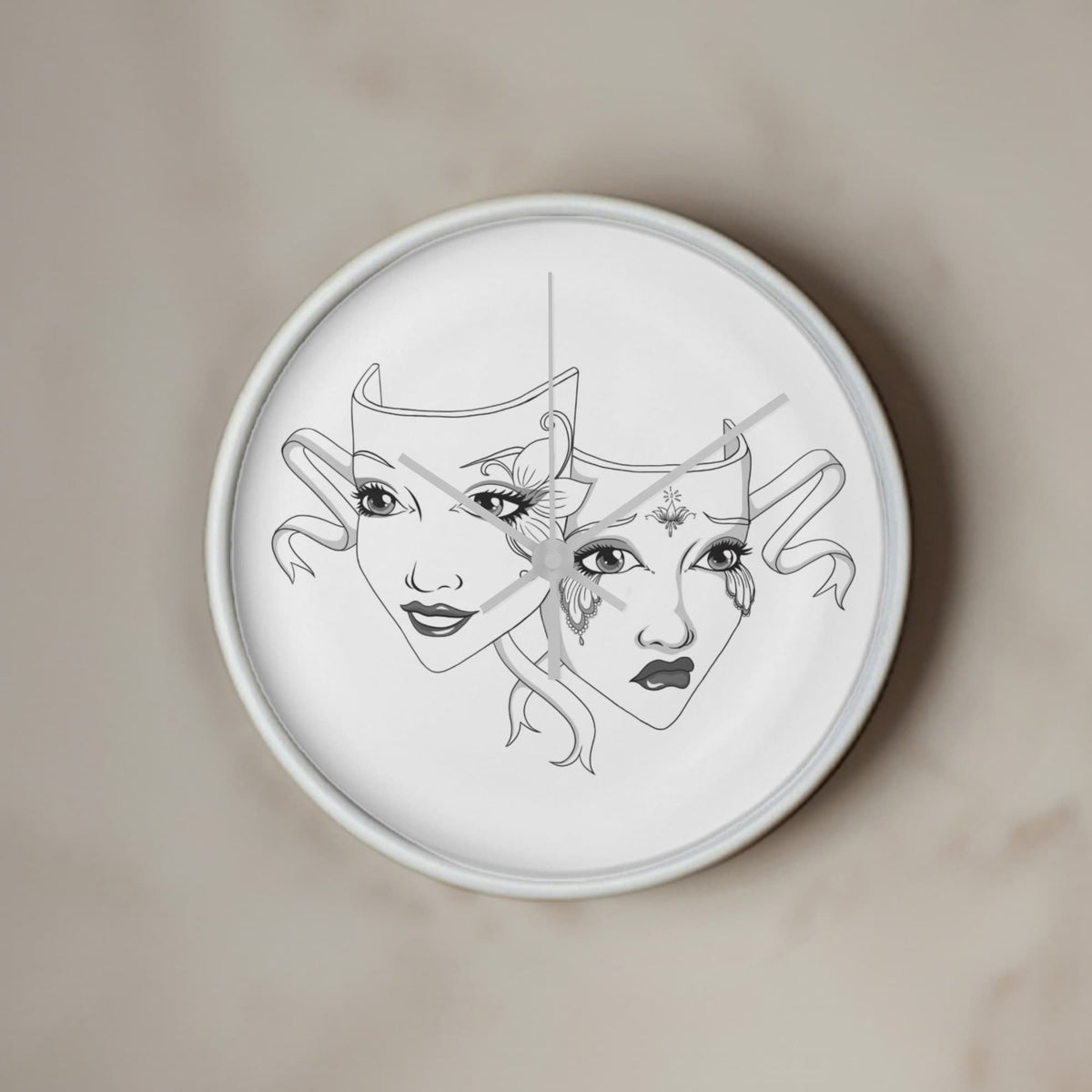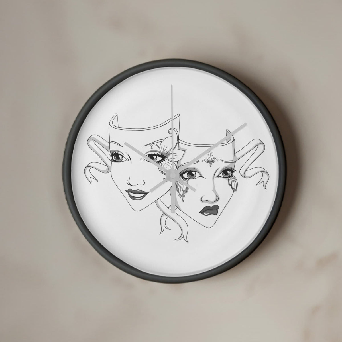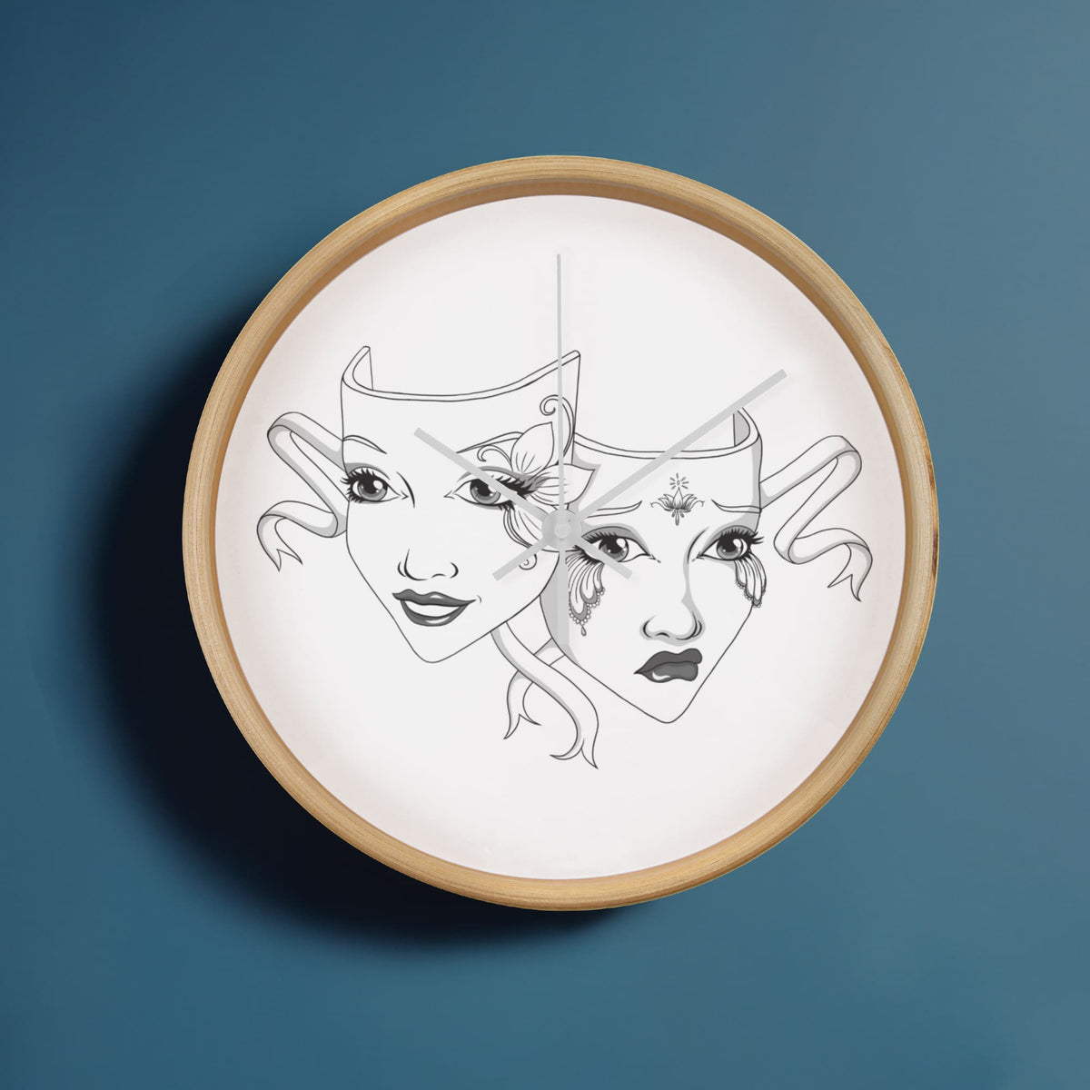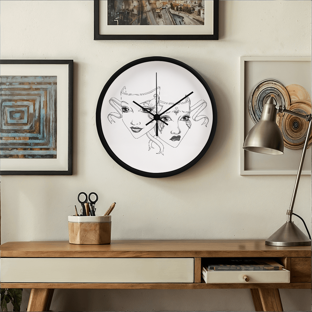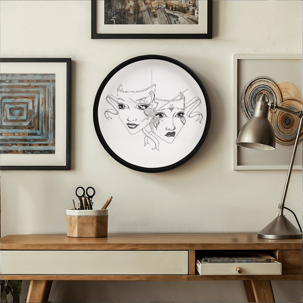 Add a touch of dramatic flair to your favorite space with our Elegant Drama Mask Wall Clock – the perfect blend of gothic theatre vibes and timeless elegance. This 10-inch wooden frame clock features original artwork, showcasing intricately illustrated comedy and tragedy masks that theatre lovers, actors, and drama enthusiasts will adore.