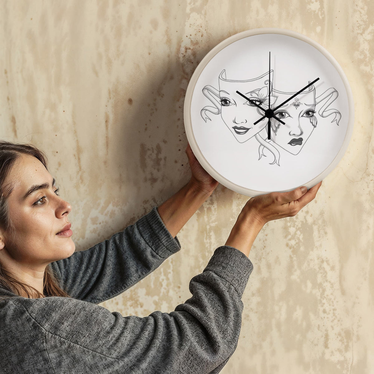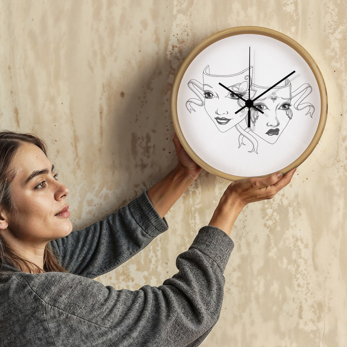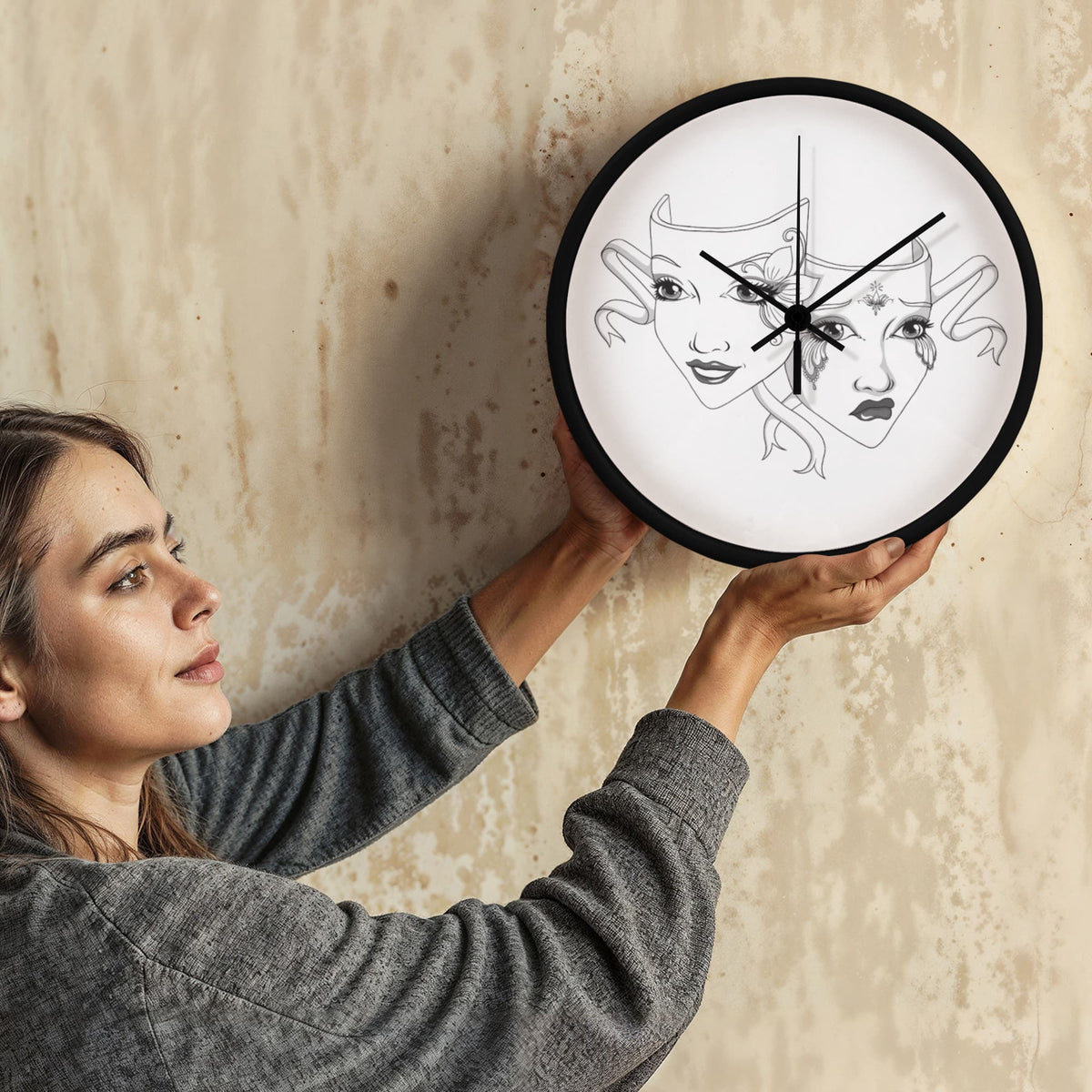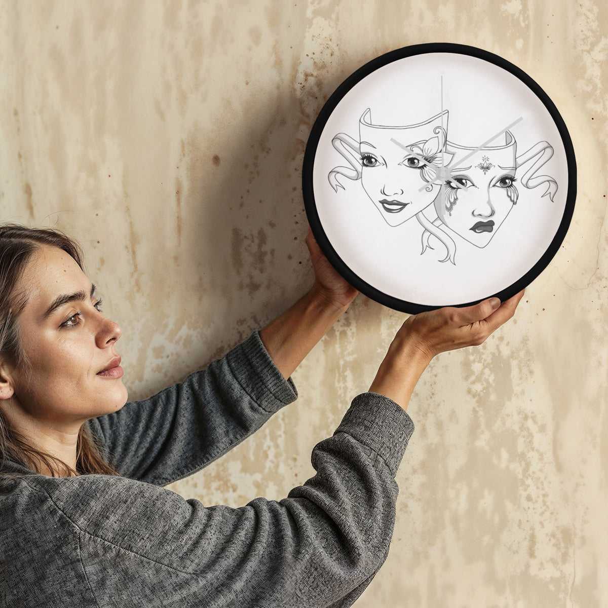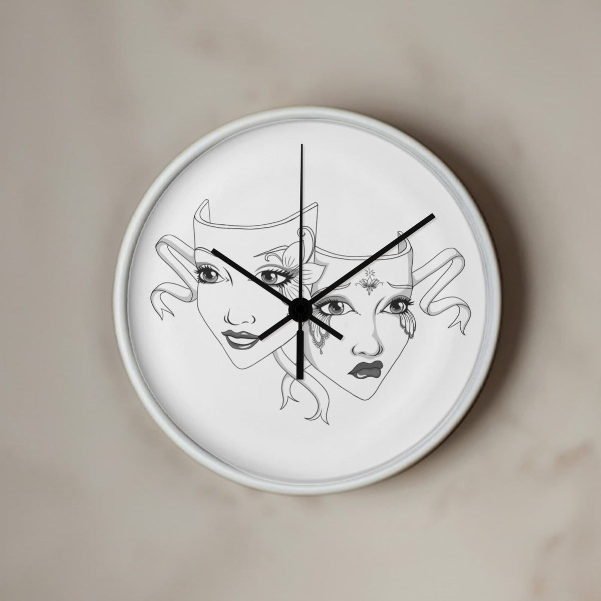 Add a touch of dramatic flair to your favorite space with our Elegant Drama Mask Wall Clock – the perfect blend of gothic theatre vibes and timeless elegance. This 10-inch wooden frame clock features original artwork, showcasing intricately illustrated comedy and tragedy masks that theatre lovers, actors, and drama enthusiasts will adore.