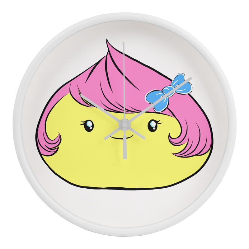 Cute Dumpling Clock – 10” Cute Yellow Wall Clock with Pink Hair & Blue Bow