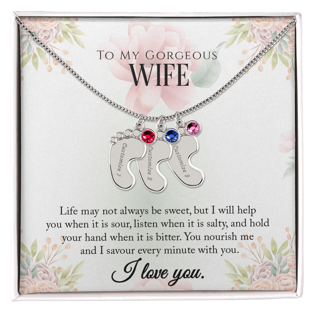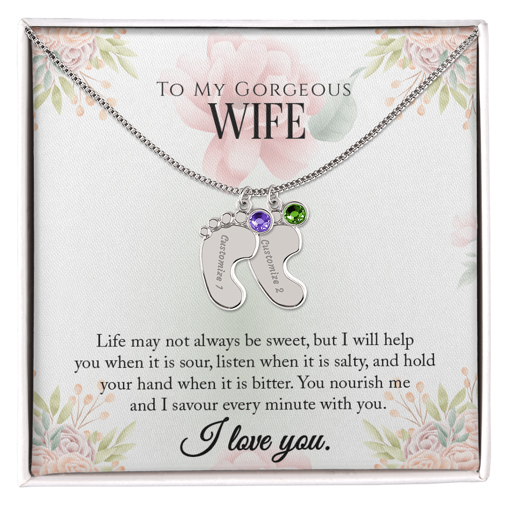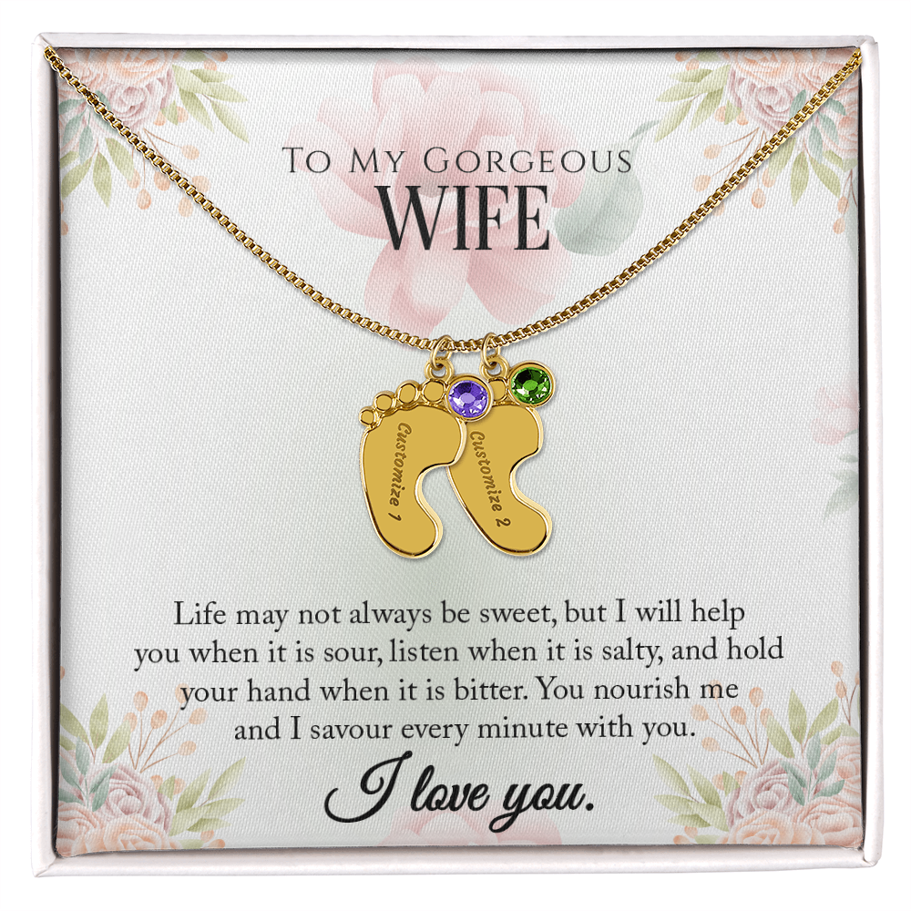 Celebrate the arrival of a newborn or cherish a precious memory with our Custom Baby Feet Necklace with Birthstone. Personalize your gift by engraving a name of your choice onto the pendant and choosing a crystal that correlates with the baby's birth month. And by picking multiple pendants, a custom present like this is perfect for moms and grandmothers with big families. This is a one-of-a-kind keepsake that will be treasured for a lifetime!
