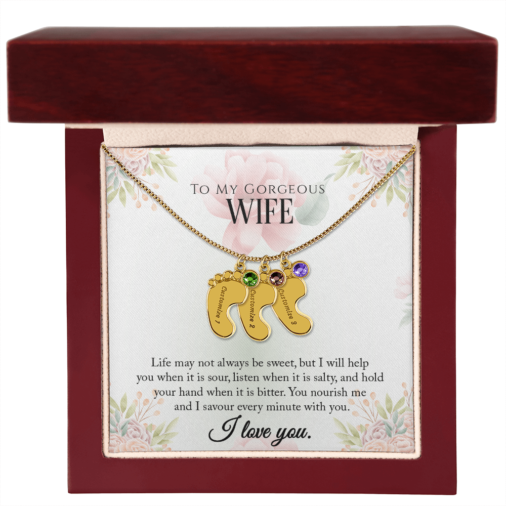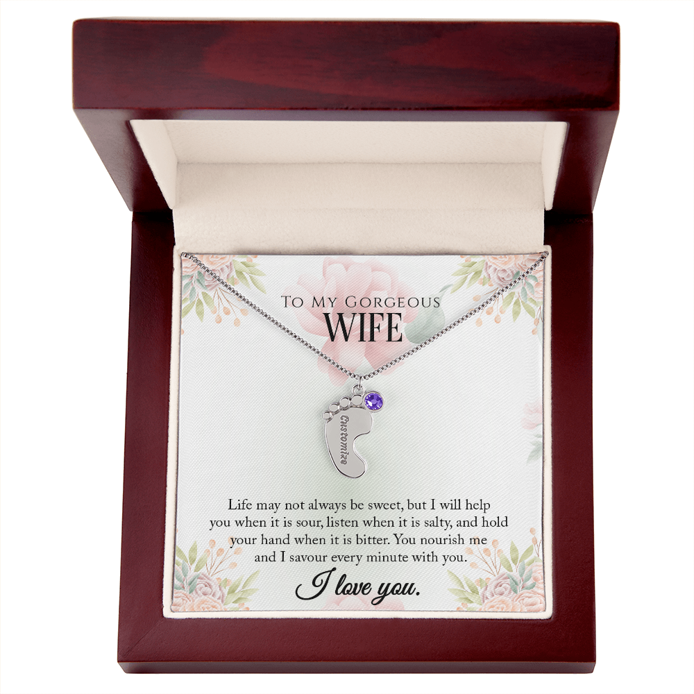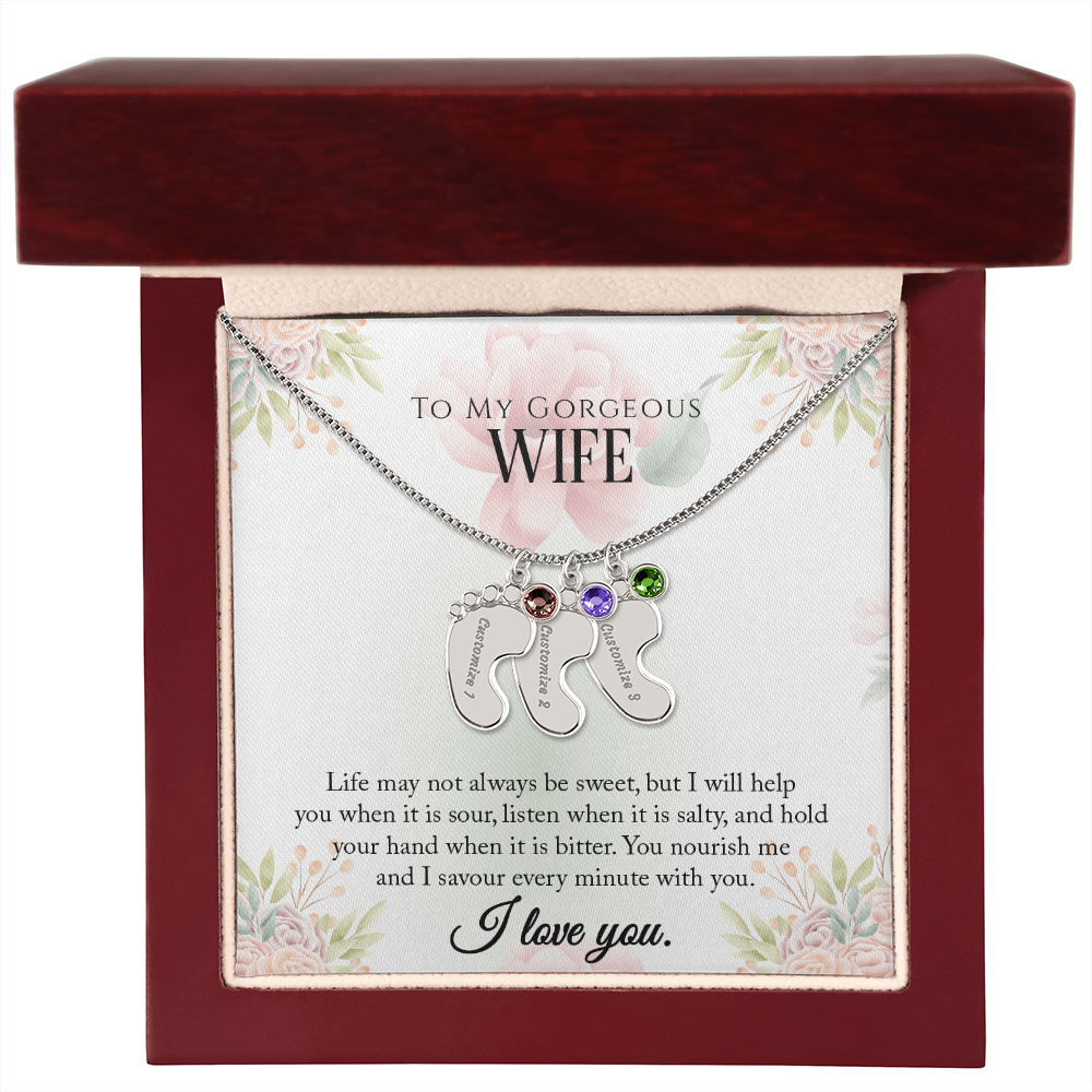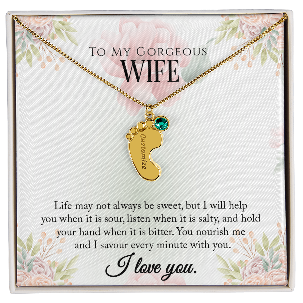 Celebrate the arrival of a newborn or cherish a precious memory with our Custom Baby Feet Necklace with Birthstone. Personalize your gift by engraving a name of your choice onto the pendant and choosing a crystal that correlates with the baby's birth month. And by picking multiple pendants, a custom present like this is perfect for moms and grandmothers with big families. This is a one-of-a-kind keepsake that will be treasured for a lifetime!