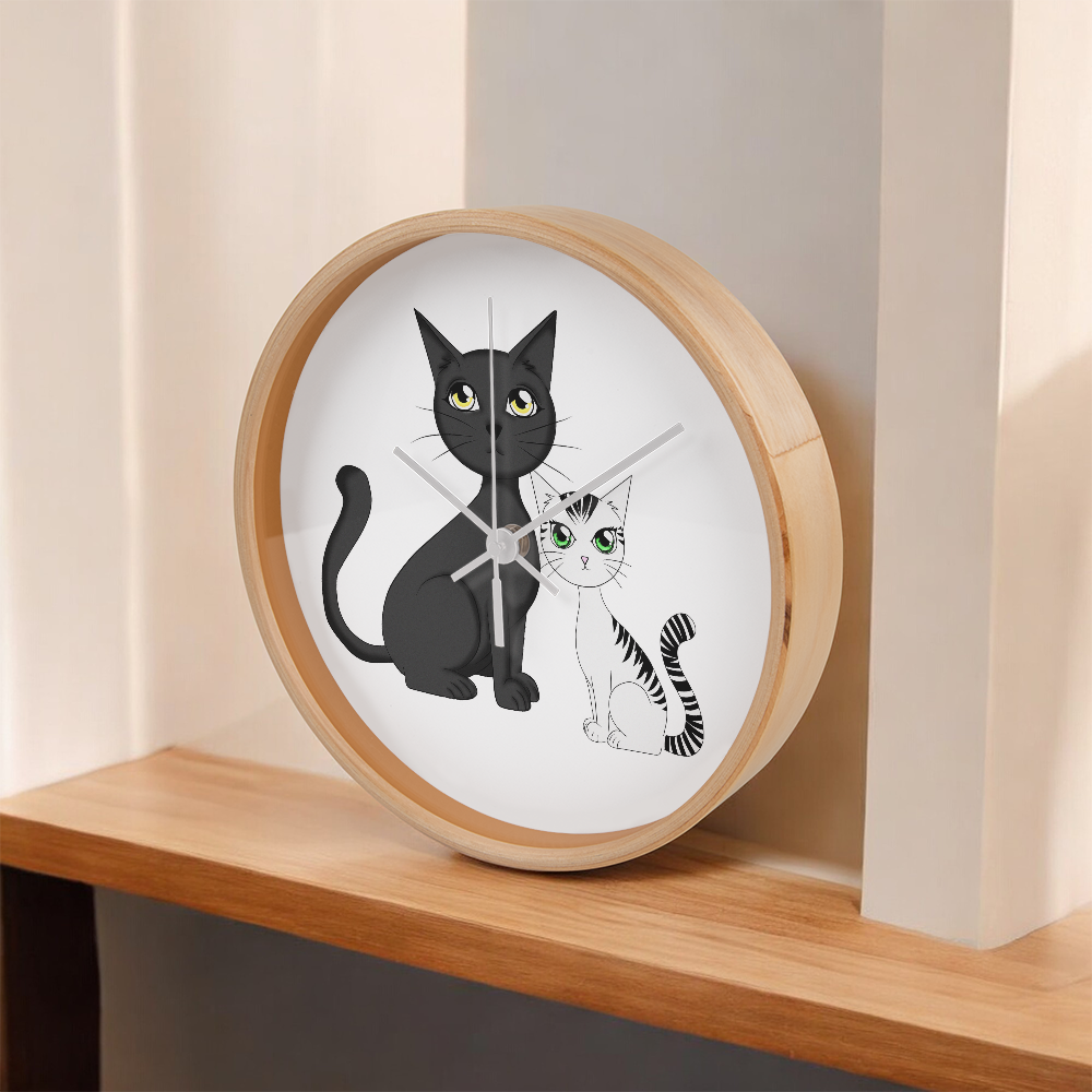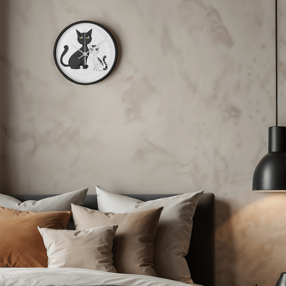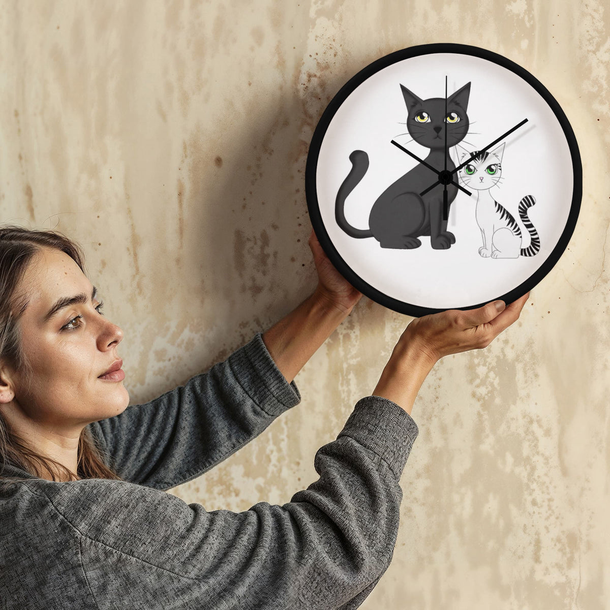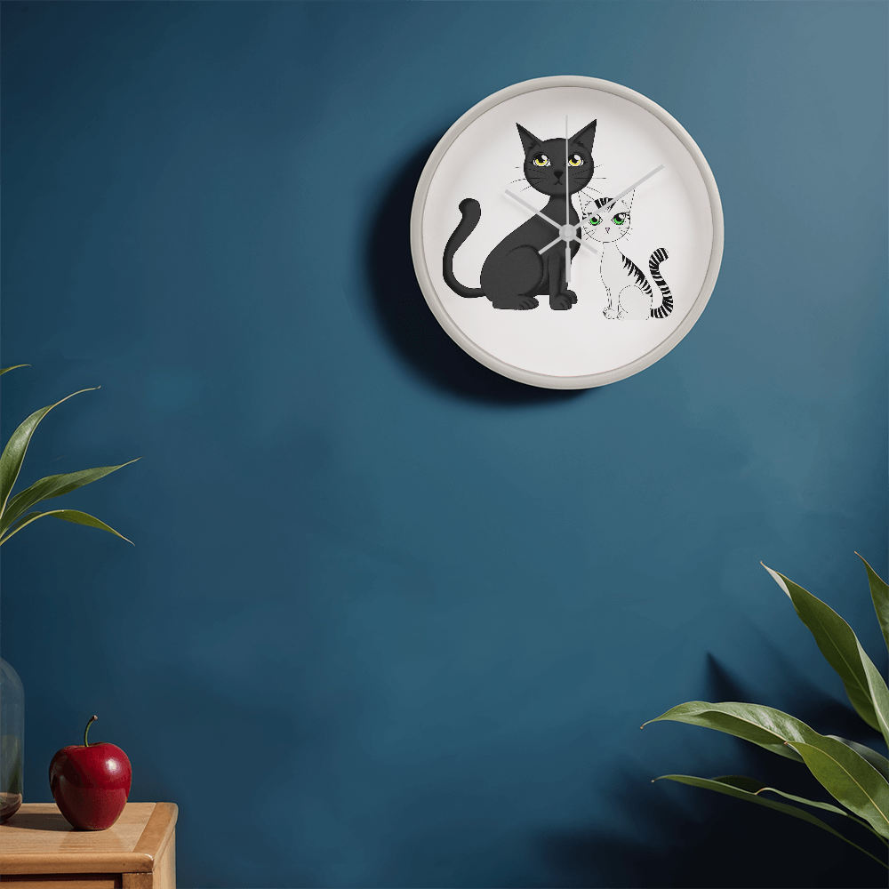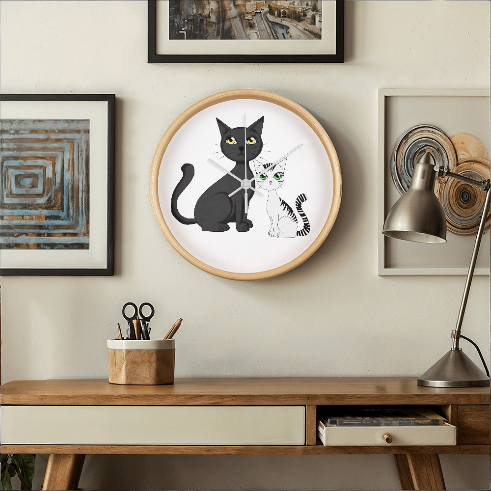 Elevate your wall decor with the Black and White Cat Clock, a sophisticated and artistic timepiece that blends minimalist lines with bold contrast. Featuring two captivating cats—one sleek black with golden eyes, and one fierce white with black tiger-like stripes and vivid green eyes—this clock is a showstopper for any feline fanatic.