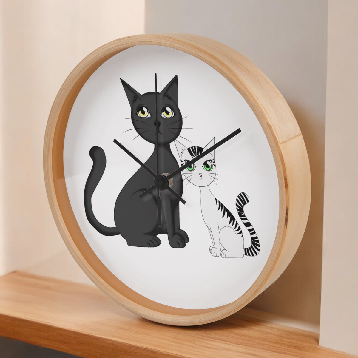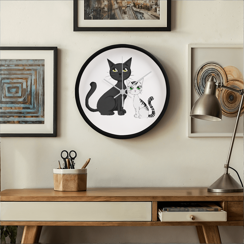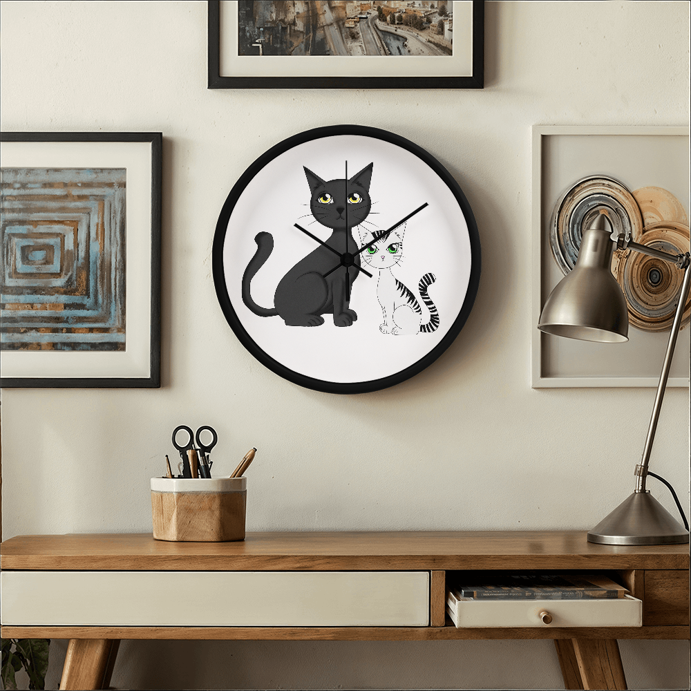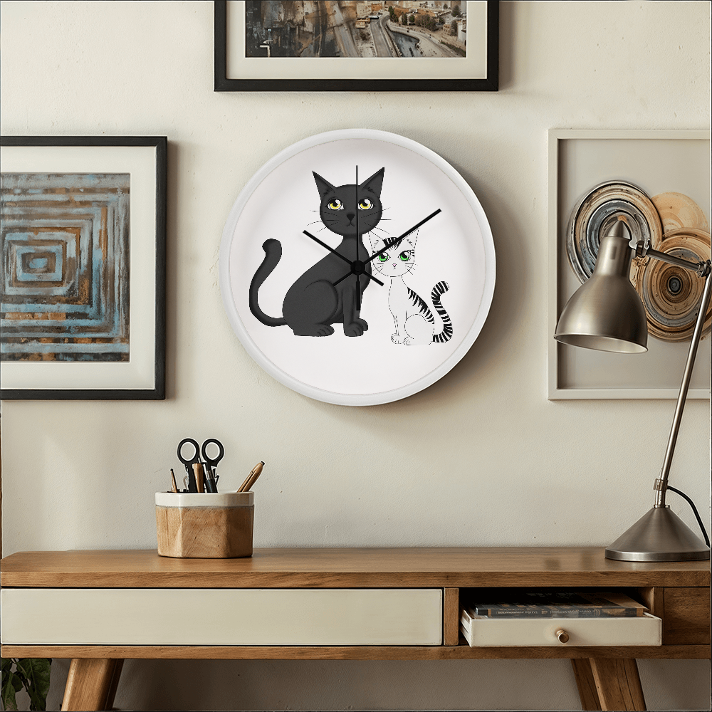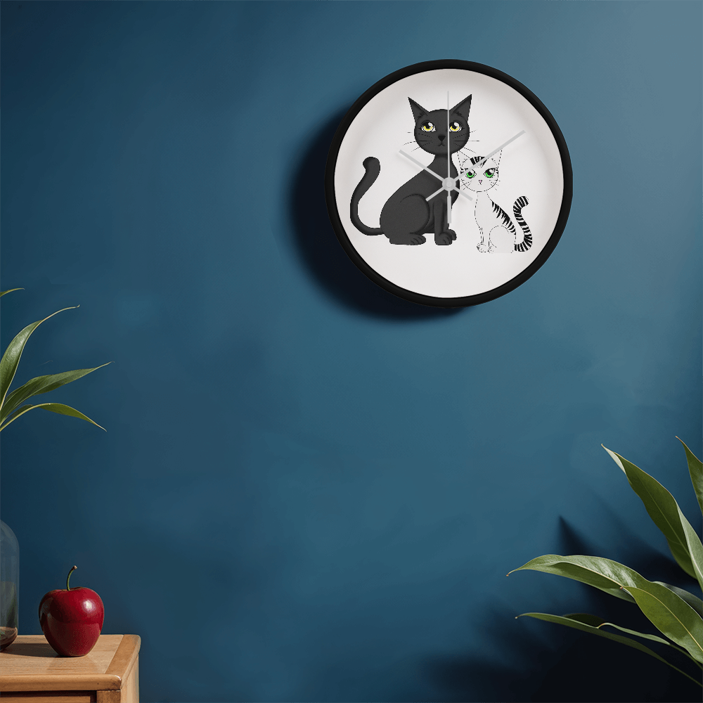 Elevate your wall decor with the Black and White Cat Clock, a sophisticated and artistic timepiece that blends minimalist lines with bold contrast. Featuring two captivating cats—one sleek black with golden eyes, and one fierce white with black tiger-like stripes and vivid green eyes—this clock is a showstopper for any feline fanatic.