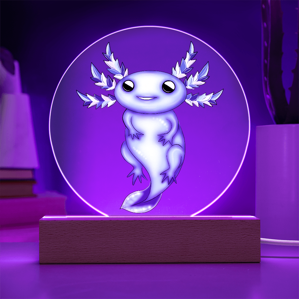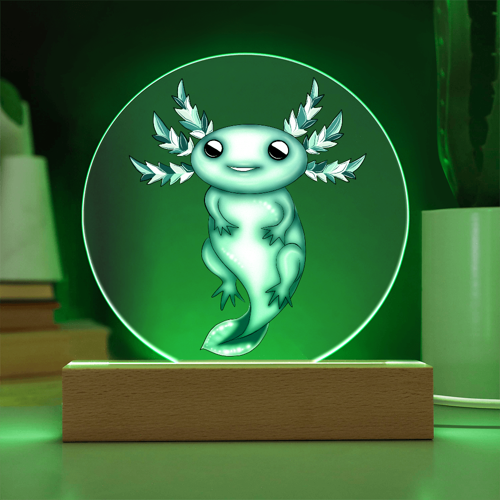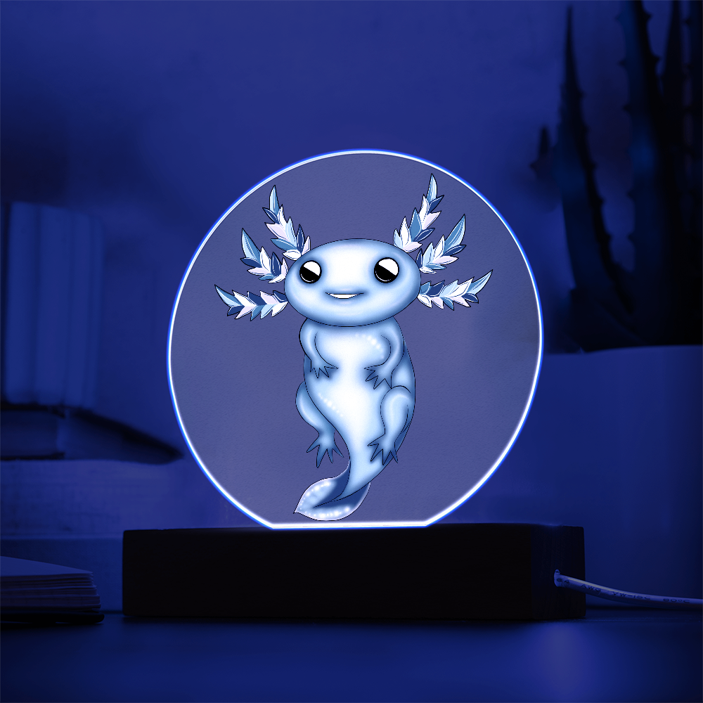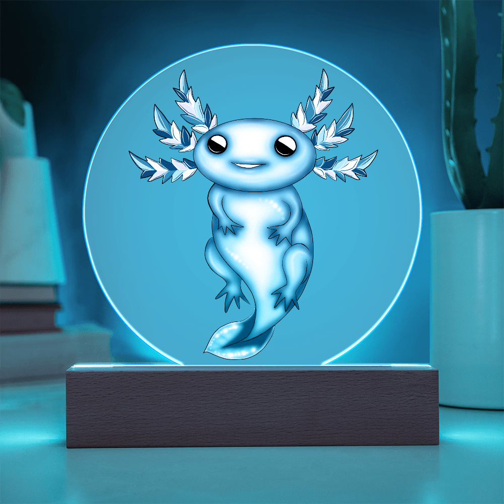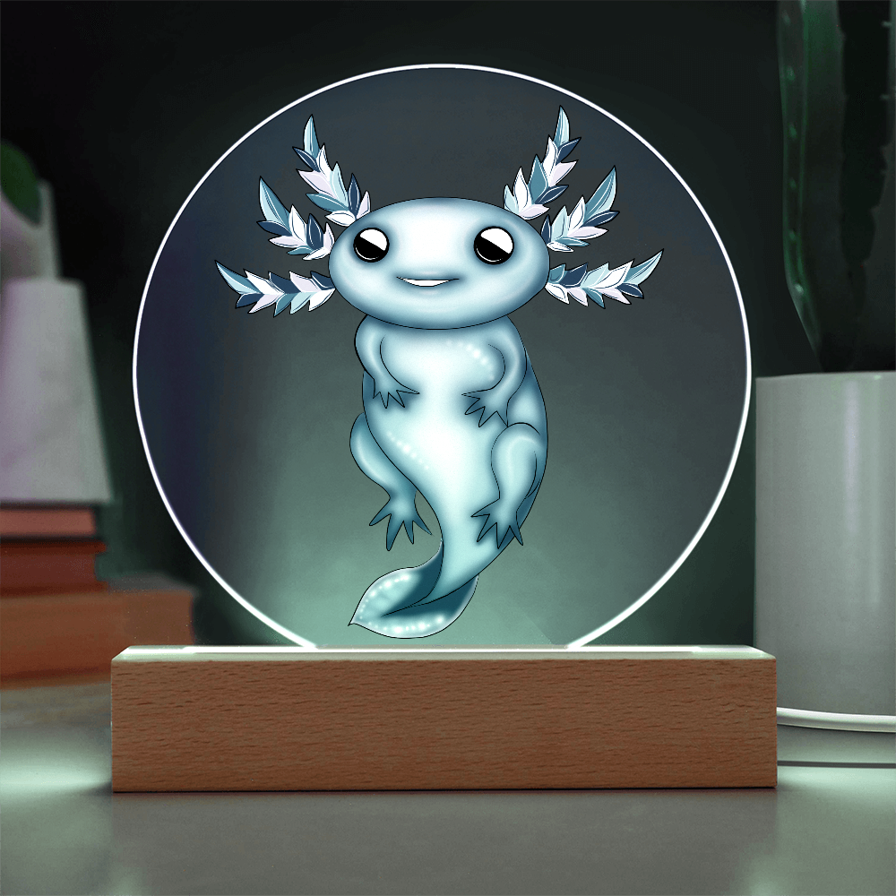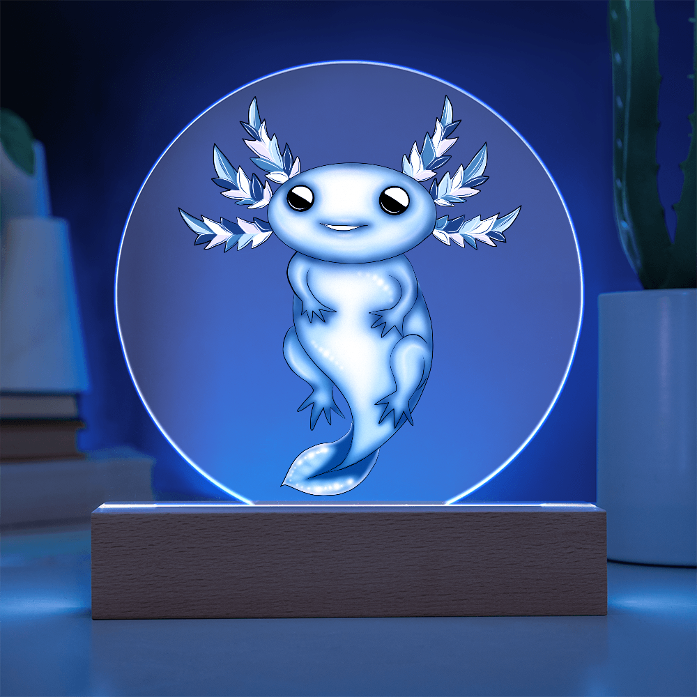 Premium acrylic and paired with a multi-color LED wooden base, this plaque makes a dreamy gift for axolotl lovers, winter decor collectors, and anyone who adores soft, whimsical lighting. Whether it’s a holiday surprise or a birthday gift, this frozen beauty will warm hearts in the frostiest season.