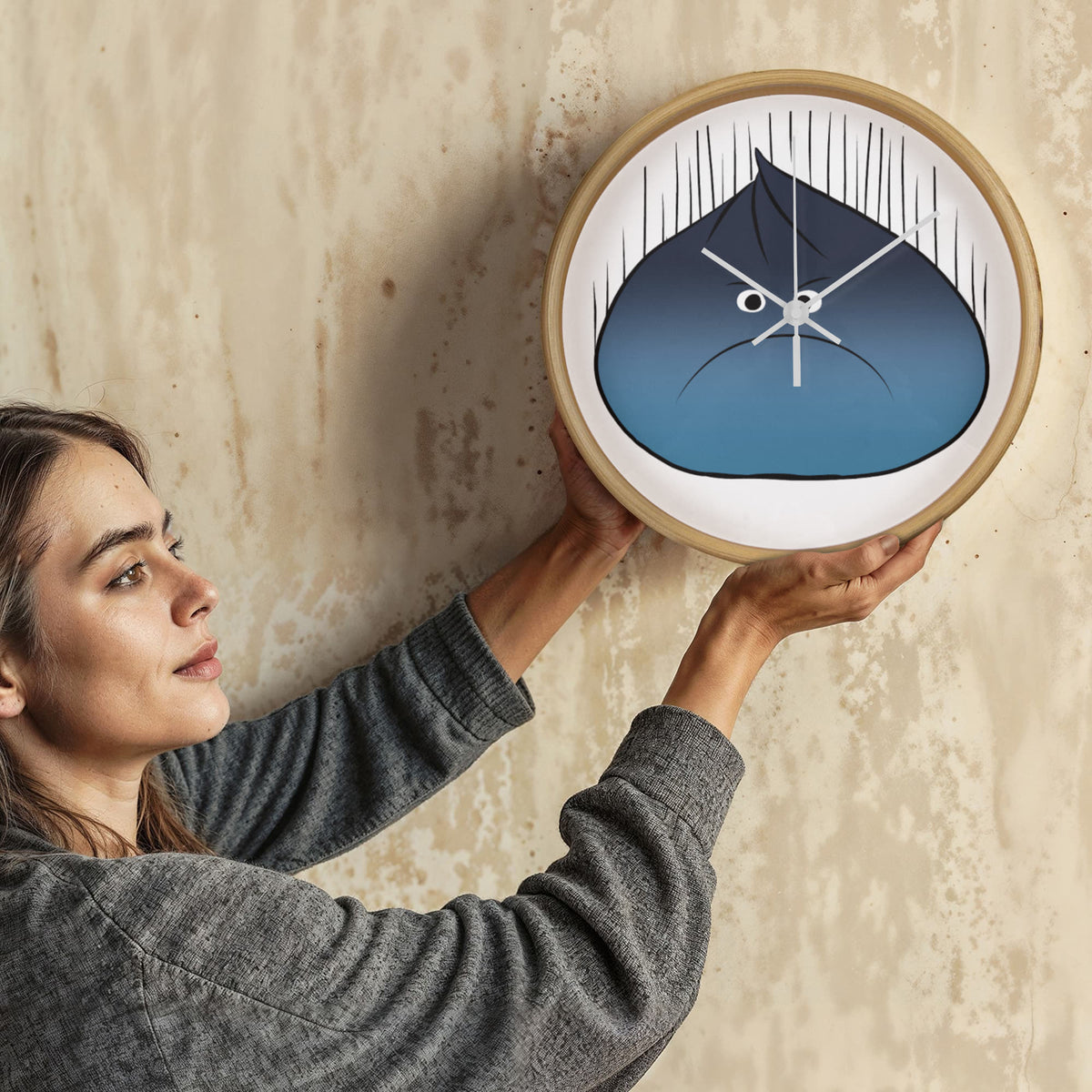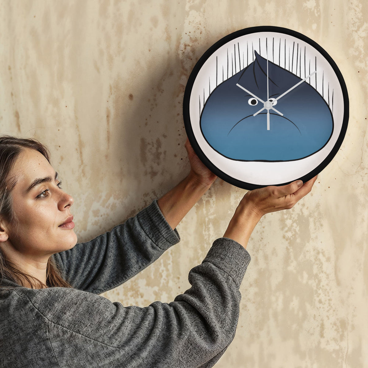 When the vibes are off and you're tired of pretending everything's fine, let your wall clock do the talking. This Grumpy Dumpling Wall Clock by Jennifer Esquire captures that "don’t talk to me until I’ve had coffee" energy with a bold, cartoonish frown and piercing stare—printed in rich midnight blue tones for maximum mood.
