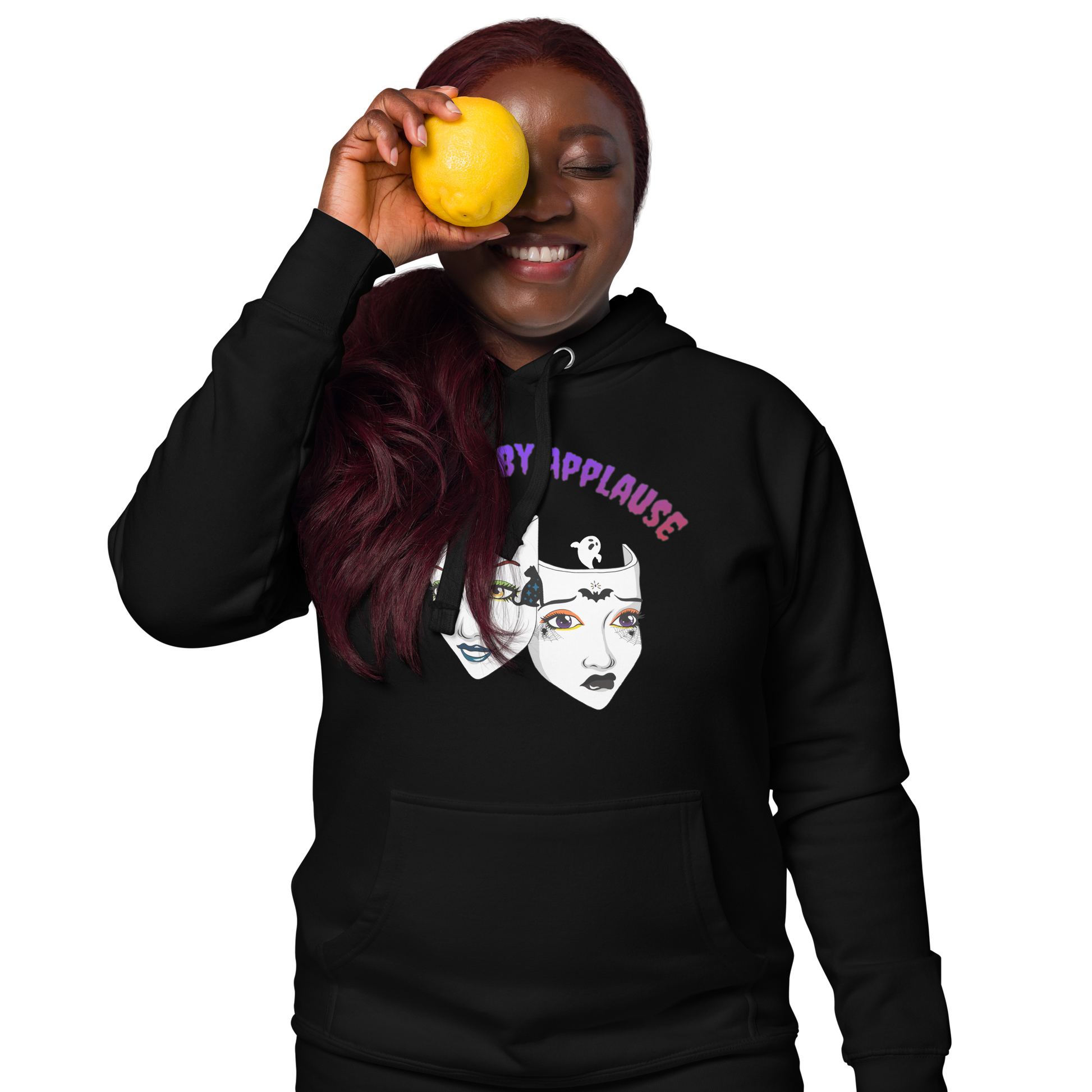Step into the spotlight with our original “Haunted by Applause” hoodie, where gothic theatre meets ghostly charm. Featuring two expressive theatre masks adorned with Halloween details, such as bats, spider webs, and cheeky little ghosts, this hoodie is a must-have for anyone who lives for drama (and ovations).