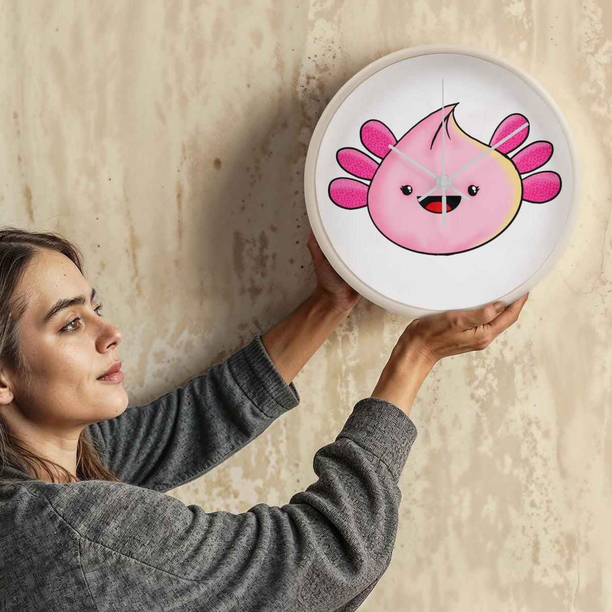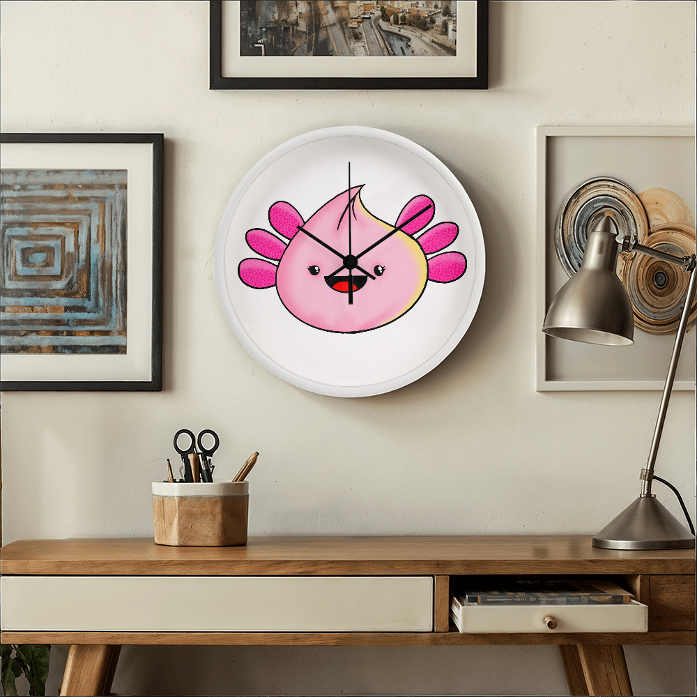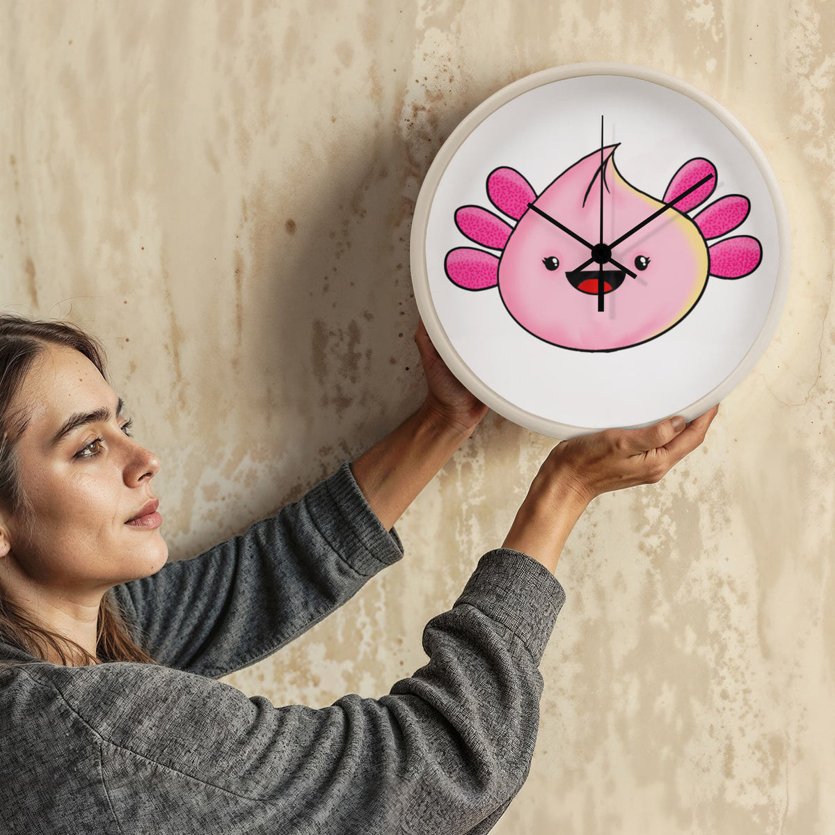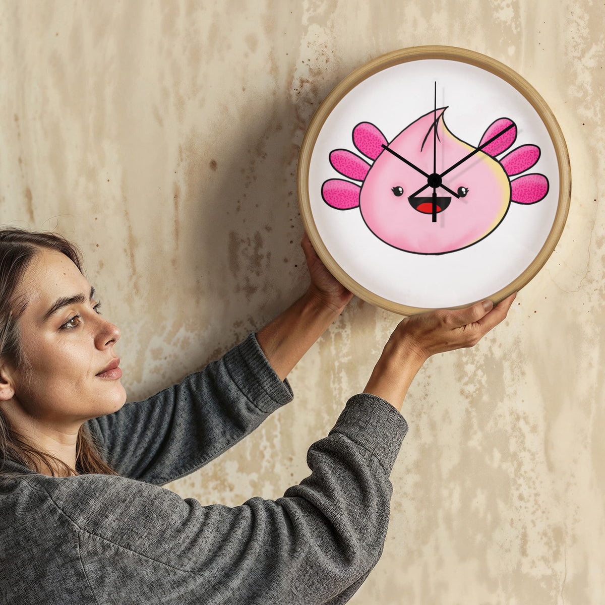Bring a splash of joy and whimsy to your walls with the Kawaii Axolotl Dumpling Wall Clock! This playful 10” wooden-framed clock features your original axolotl-meets-dumpling hybrid design—bursting with cuteness, charm, and personality. Whether you're refreshing a cozy space, gifting a fellow axolotl lover, or creating a kawaii-inspired room, this timepiece blends adorable style with practical function.