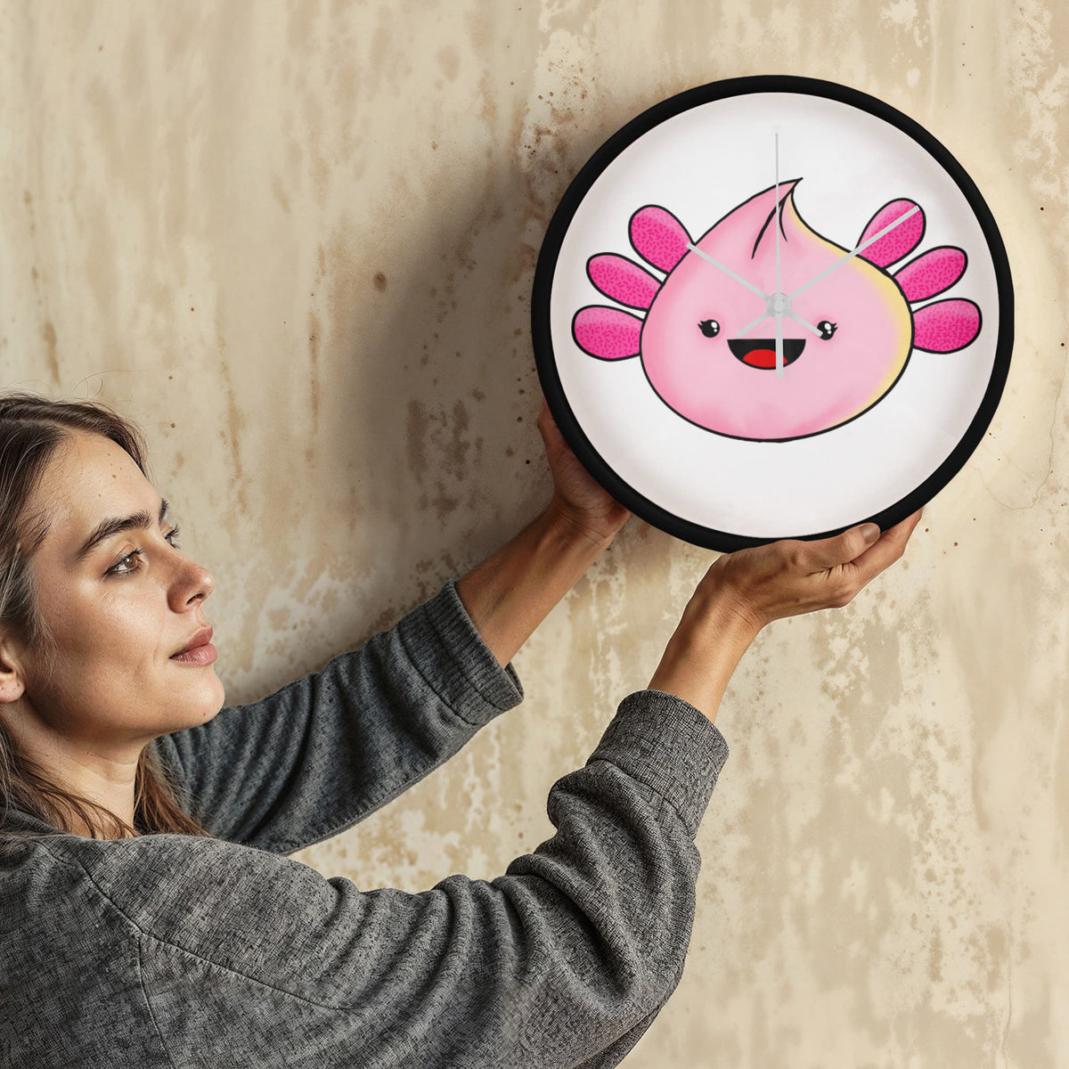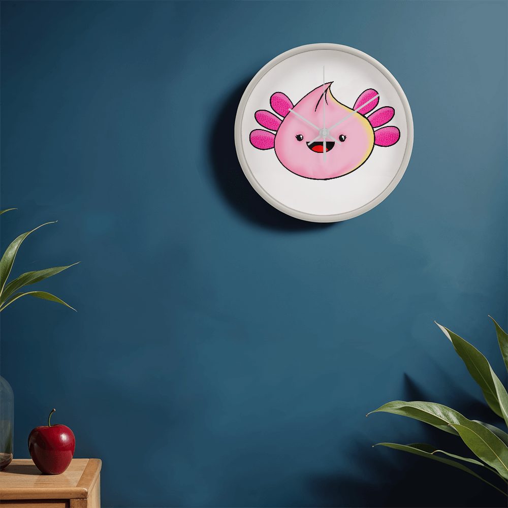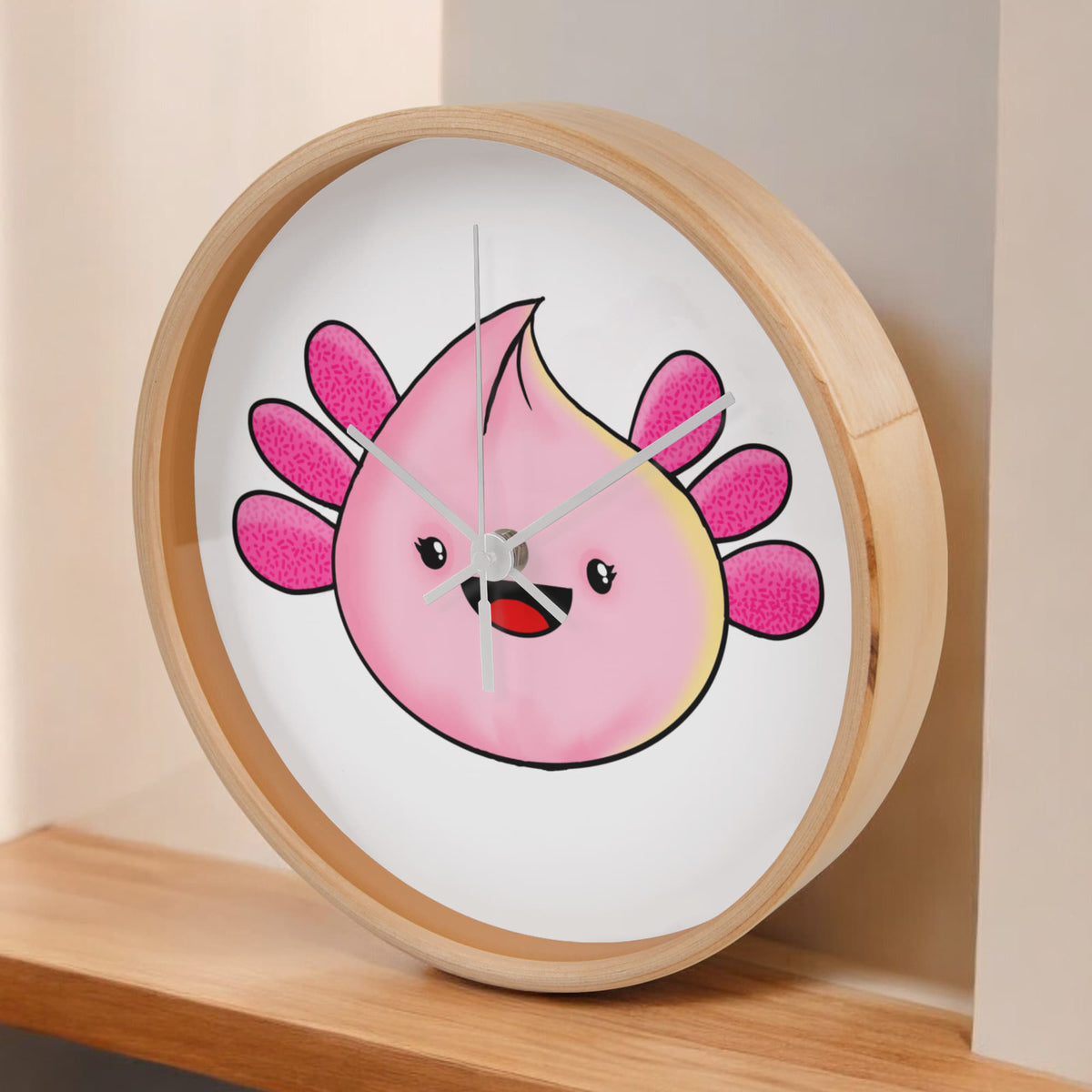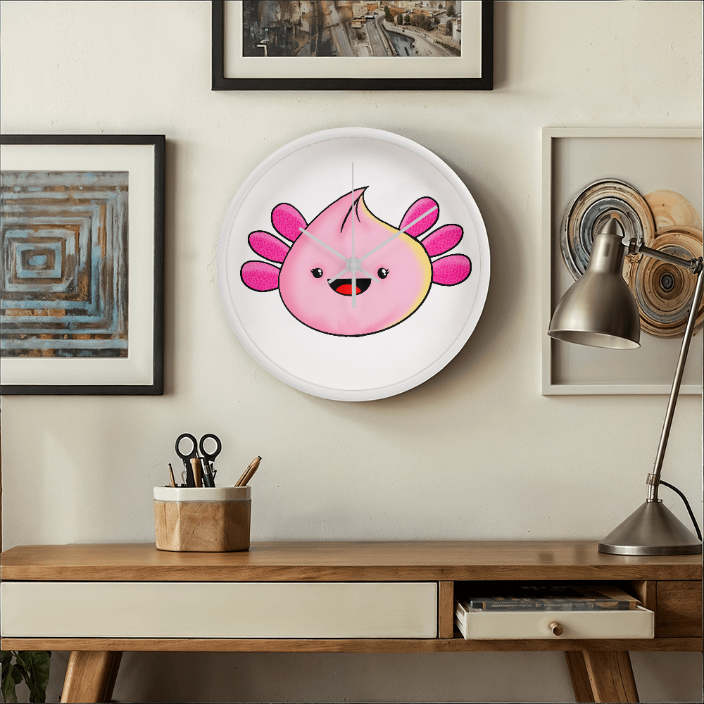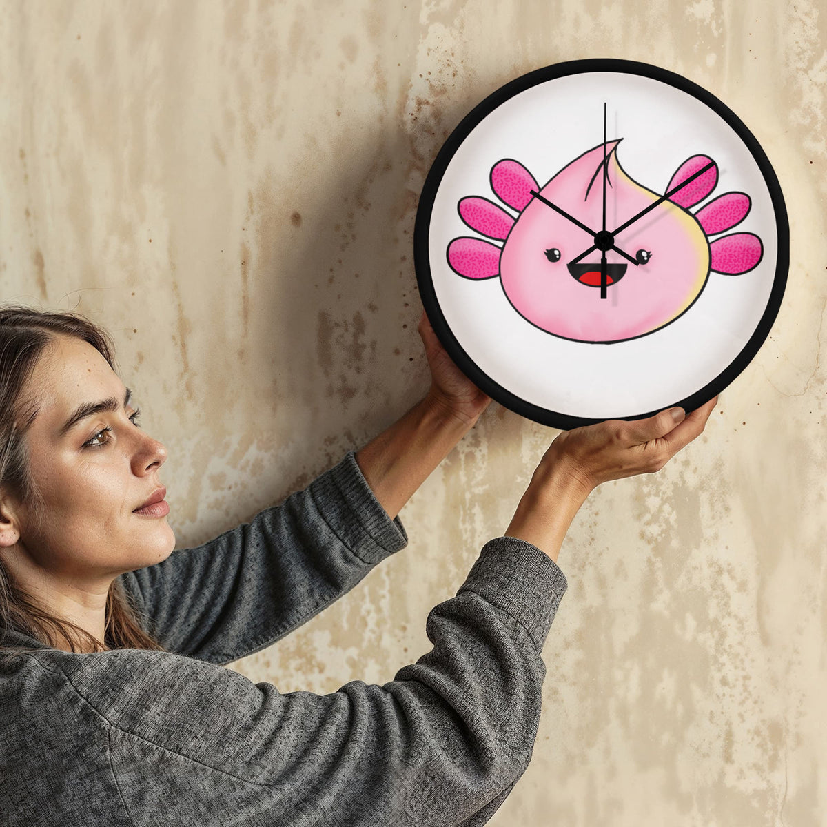 Bring a splash of joy and whimsy to your walls with the Kawaii Axolotl Dumpling Wall Clock! This playful 10” wooden-framed clock features your original axolotl-meets-dumpling hybrid design—bursting with cuteness, charm, and personality. Whether you're refreshing a cozy space, gifting a fellow axolotl lover, or creating a kawaii-inspired room, this timepiece blends adorable style with practical function.