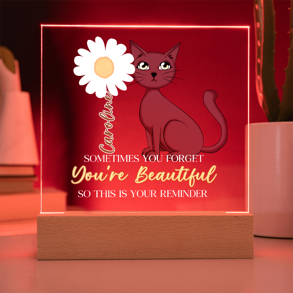 Custom Name Gift Affirmation LED Acrylic Plaque – “You're Beautiful” Cat Lover Gift, Inspirational Light Decor
