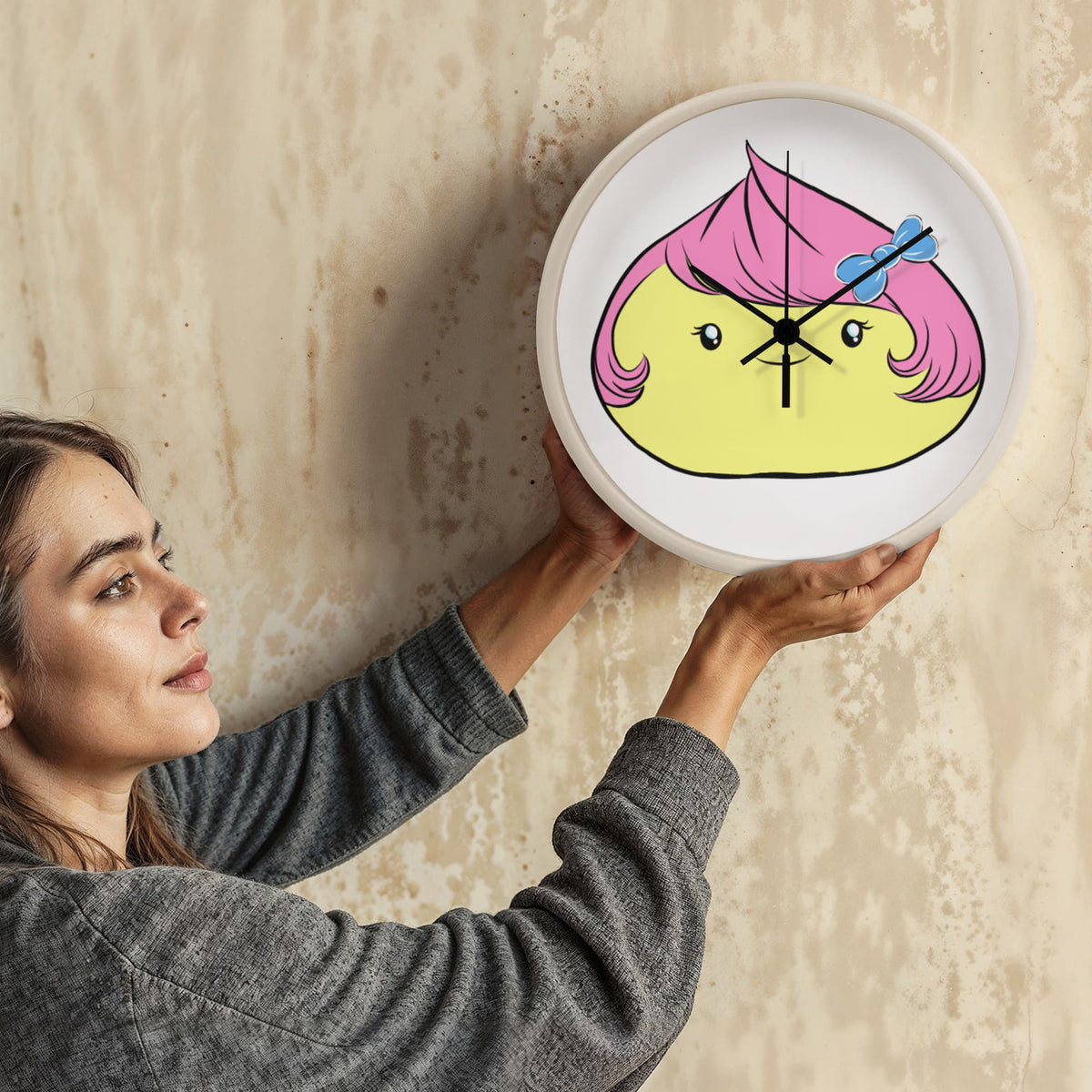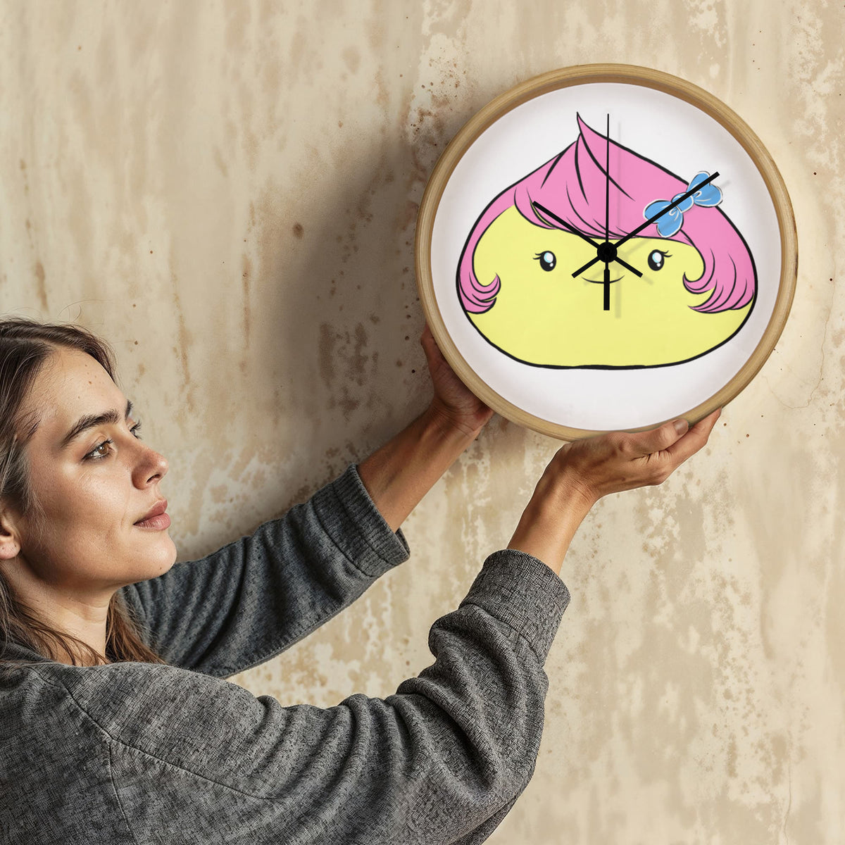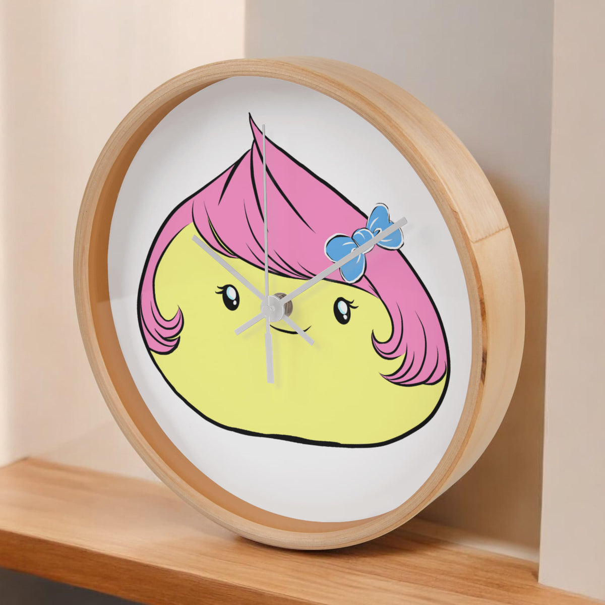 Brighten up your day with this adorable Cute Dumpling Clock — the perfect blend of cute and quirky! This charming character features bubblegum-pink hair, a blue bow, and a sweet smile that brings joy to any room.
