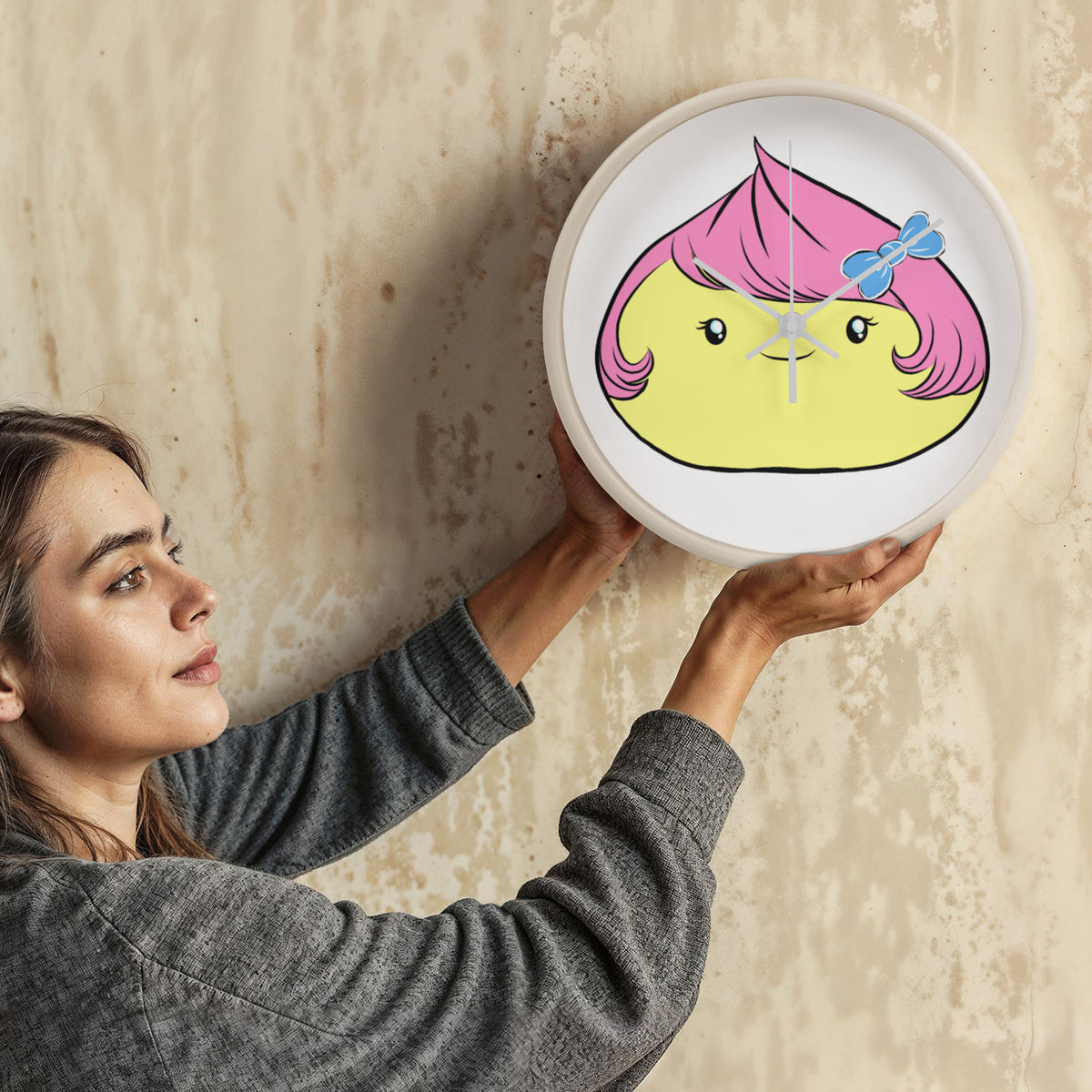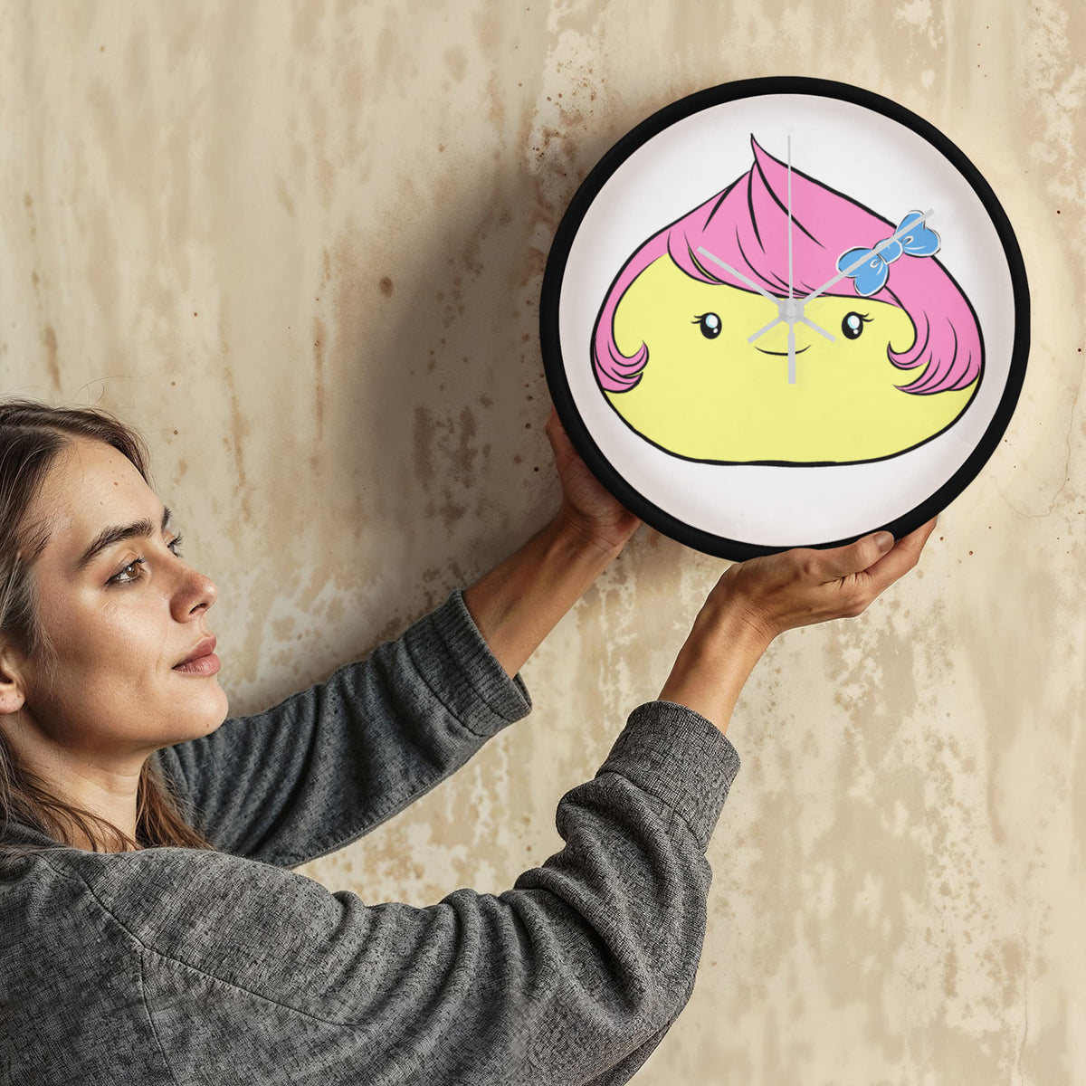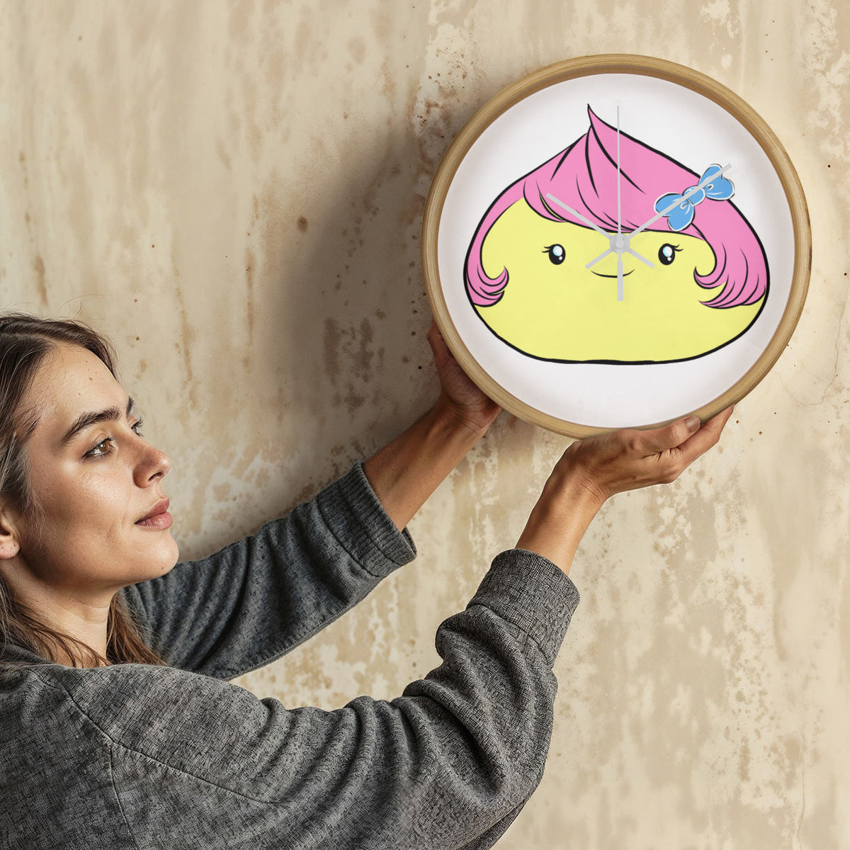 Brighten up your day with this adorable Cute Dumpling Clock — the perfect blend of cute and quirky! This charming character features bubblegum-pink hair, a blue bow, and a sweet smile that brings joy to any room.