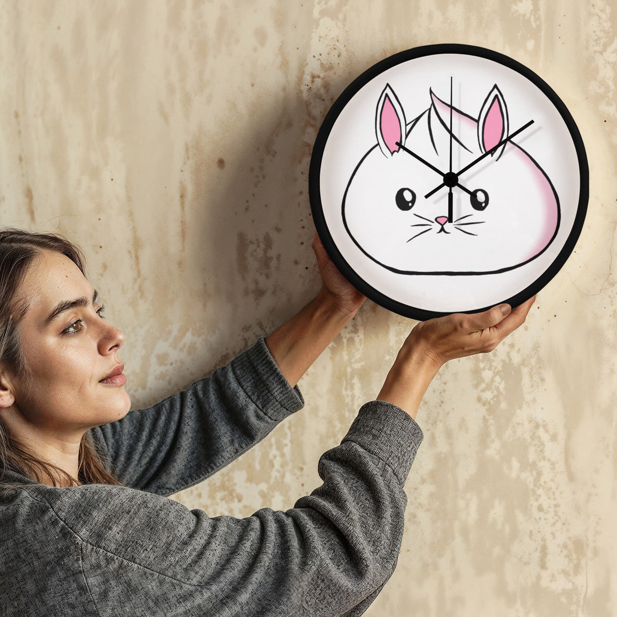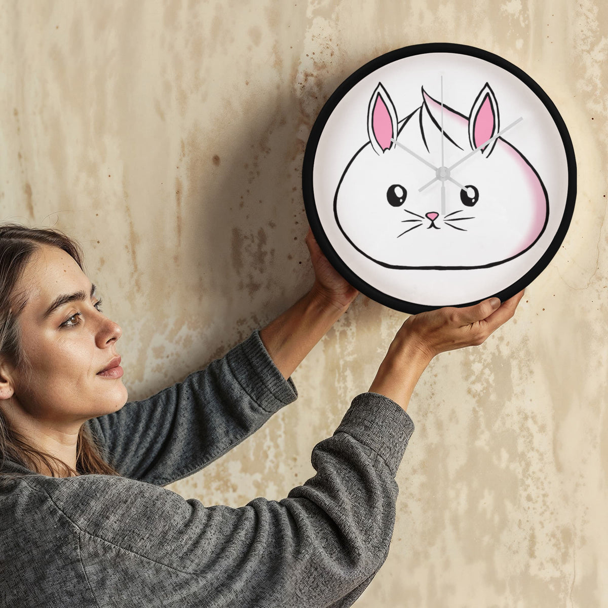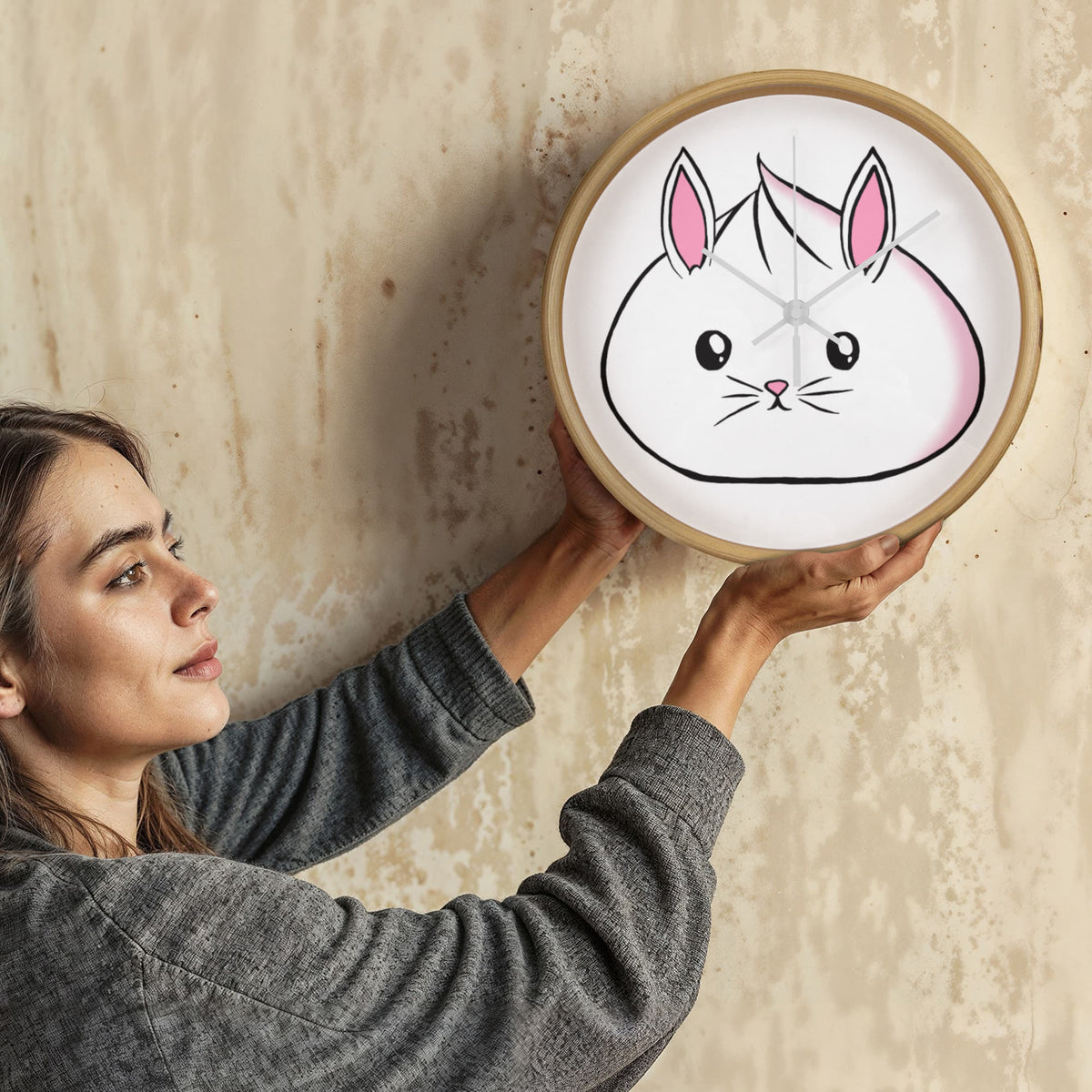 Bring charm, cheer, and cuteness to any room with our Kawaii Bunny Dumpling Wall Clock! This 10” wooden-framed clock features an irresistibly squishy white bunny dumpling design with pastel pink accents, original art by Kawaii Esquire. Whether you're decorating a child’s bedroom, your kawaii-inspired home office, or gifting it to a bunny lover, this clock is a functional and whimsical statement piece.