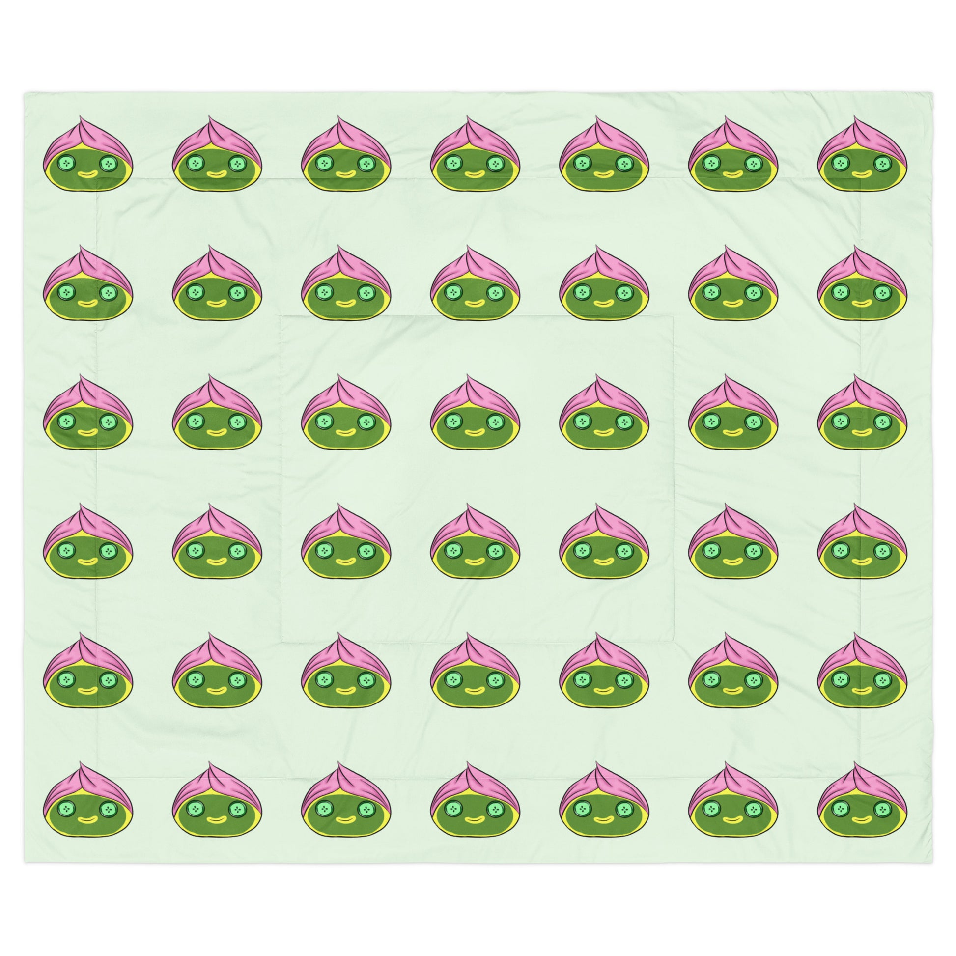 Turn your bedroom into a cozy self-care retreat with this kawaii spa dumpling comforter. Featuring an adorable dumpling character wrapped in a towel with cucumbers over its eyes, this playful design captures the perfect “spa day” mood—relaxed, refreshed, and irresistibly cute.