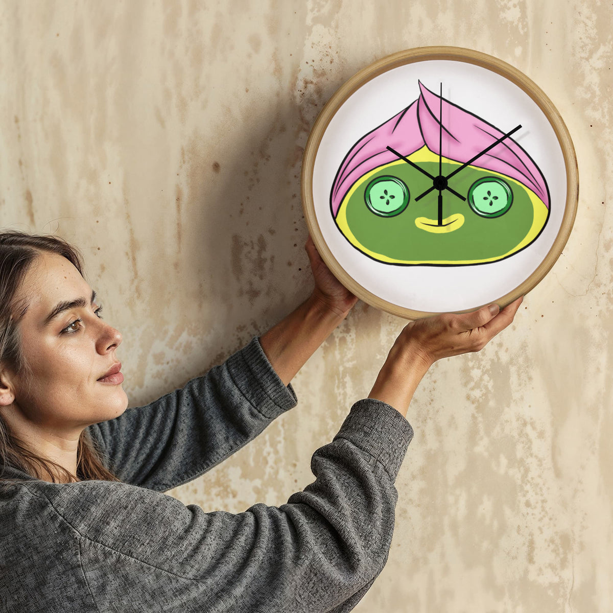 Time to treat yourself! Our Spa Dumpling Wall Clock is the cutest way to stay on schedule while embracing a little self-care magic. This charming character features a relaxing green face, cucumber slice eyes, and a perfectly wrapped pink towel — the ultimate symbol of “me time.”